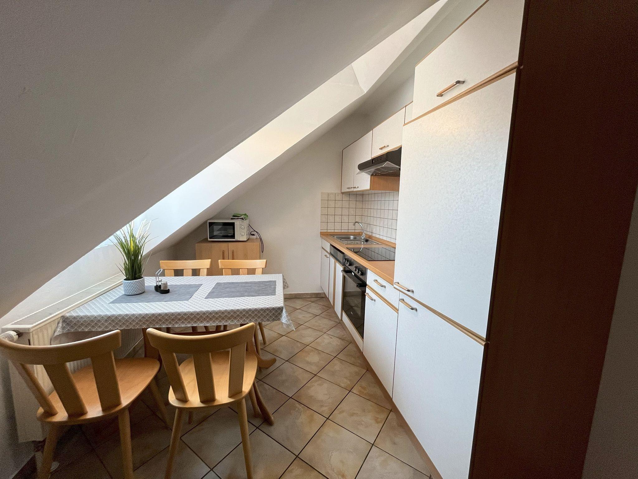 Im 2. Obergeschoss gelegen, bietet dieses etwa 42?m² große Apartment einen offenen Wohn- und Schlafbereich mit einem gemütlichen Doppelbett und einer Schlafcouch. Der Balkon auf der Westseite ermöglicht entspannte Stunden mit Gartenblick. Die Küche ist umfangreich ausgestattet mit Geschirrspüler, Ceranfeld, Backofen, Mikrowelle und weiteren praktischen Geräten. Das Tageslichtbad mit Dusche, WC und Haartrockner sorgt für Komfort. Das Apartment ist rauchfrei, allergikerfreundlich und verfügt über kostenloses WLAN, SAT-TV und einen Safe. Gemeinschaftlich nutzbar sind ein Grillplatz, ein Kinderspielbereich mit Trampolin, eine Waschmaschine und Trockner sowie eine abschließbare Garage für Fahrräder mit E-Bike-Ladestation.