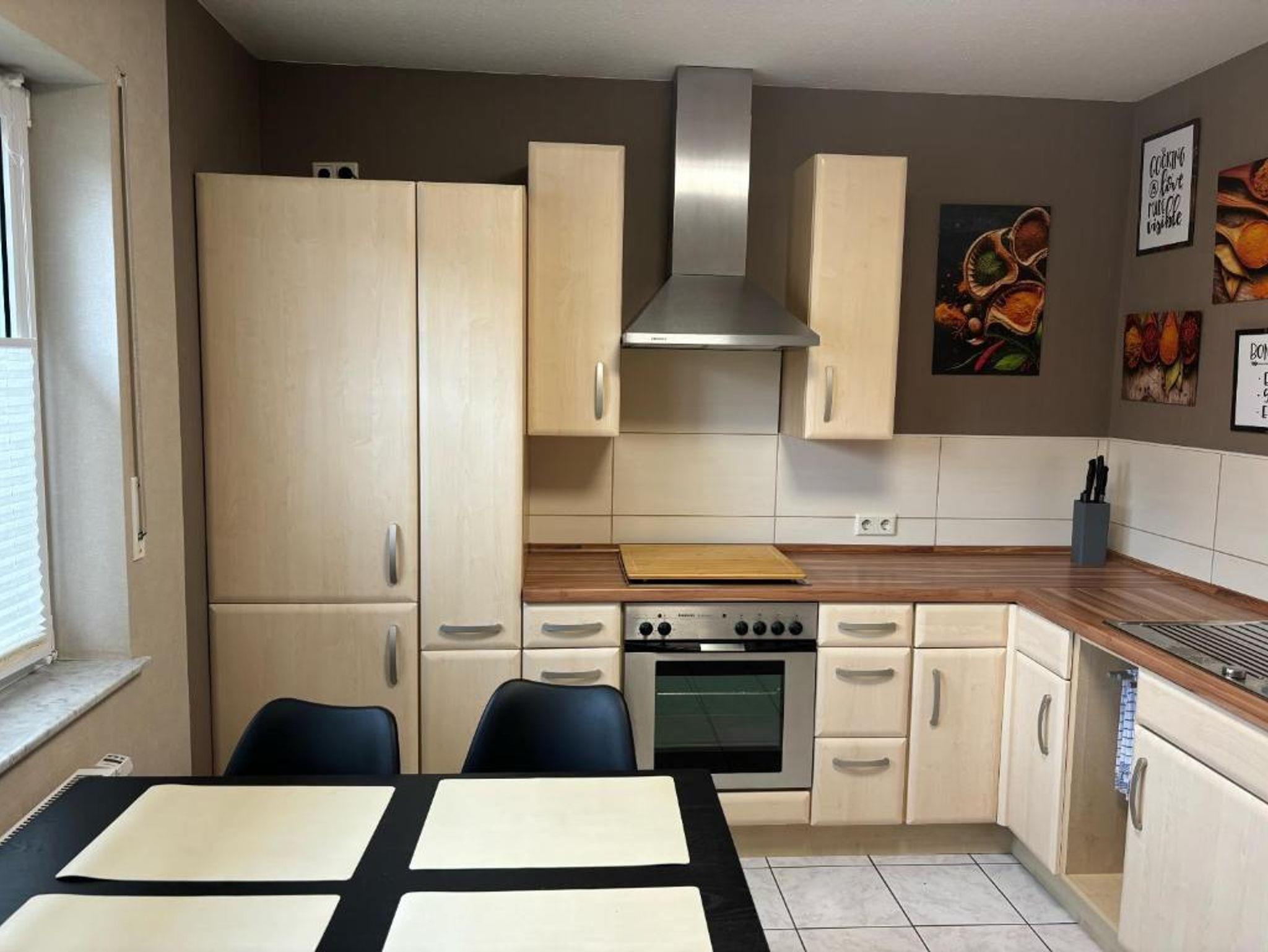 Es sind zwei Schlafzimmer vorhanden mit einem Doppelbett und zwei Klappbetten. Die Wohnküche mit Küchenzeile hat einen Essplatz für 4 Personen und eine Spülmaschine. Im Wohnzimmer ist eine Sitzecke vorhanden, die man zu einer Schlafcouch umfunktionieren kann. Bad mit Dusche, Badewanne, WC, Waschbecken und Fön, sowie TV und kostenfreies WLAN und eine Terrasse im EG bzw. ein Balkon im 1. OG sind ebenfalls vorhanden.