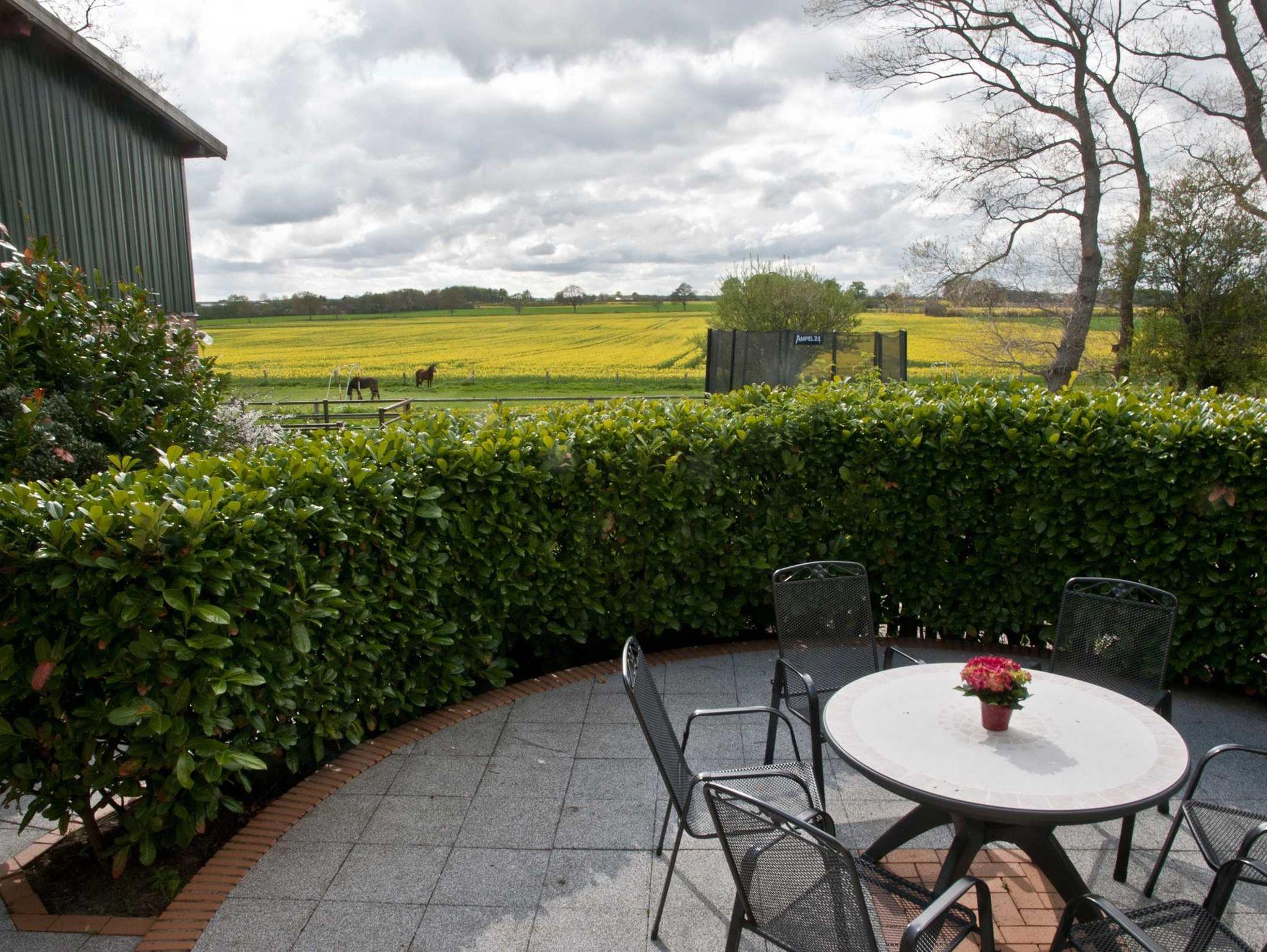 Die herrliche Landschaft der Umgebung genießt man auf der möblierten Terrasse vor der Ferienwohnung.