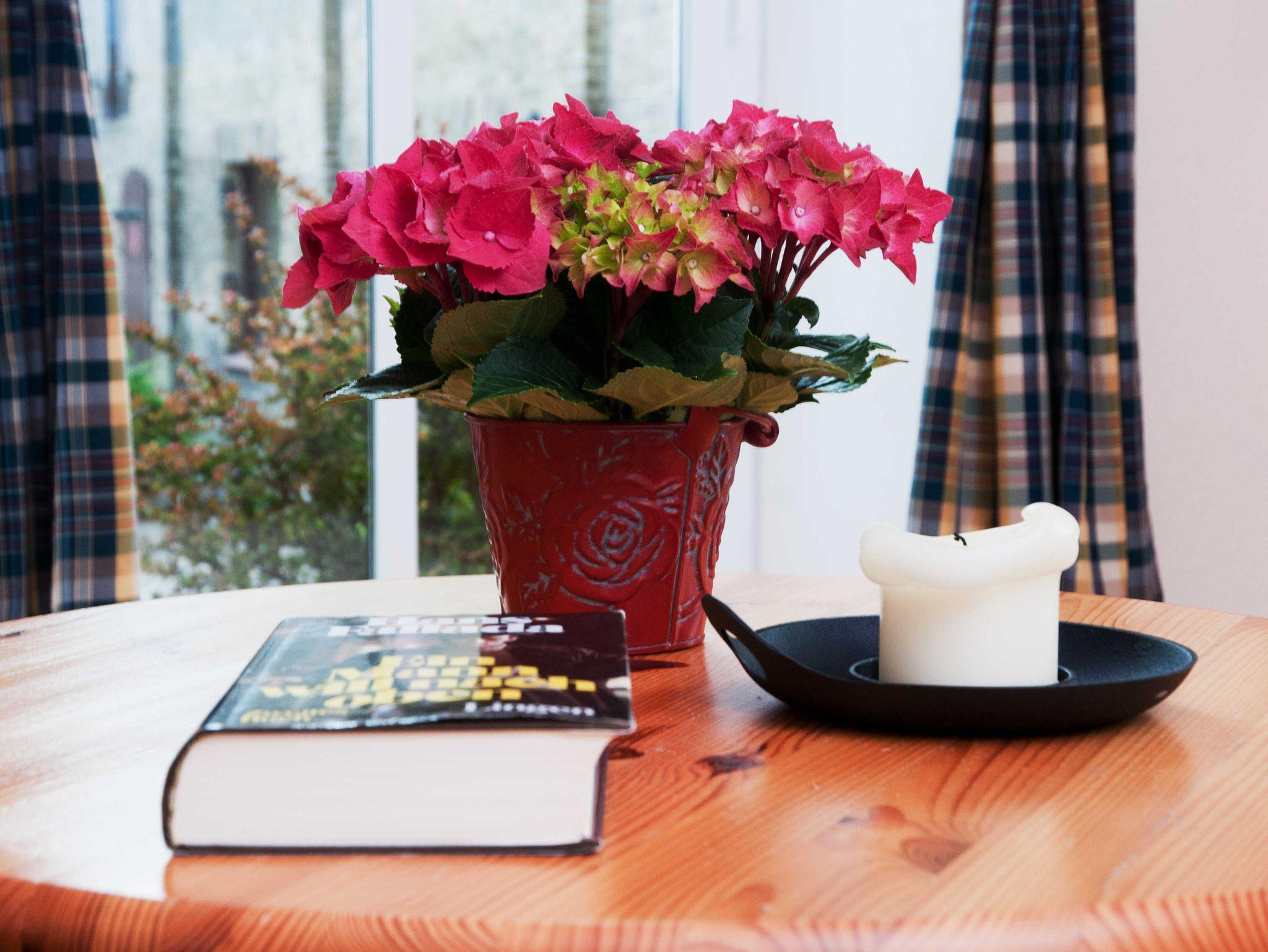 Die Ferienwohnung Schöne Aussicht bietet bis zu 6 Personen angenehmen Urlaubskomfort über zwei Etagen. Moderne Elemente, kräftige Farbakzente und ein weiter Ausblick über Wiesen und Felder sorgen für Wohlfühlambiente.