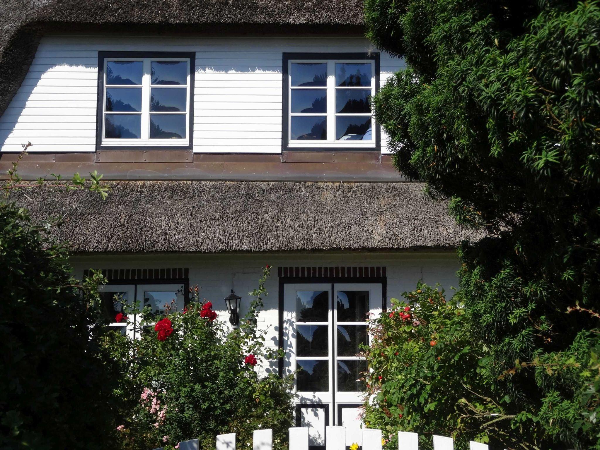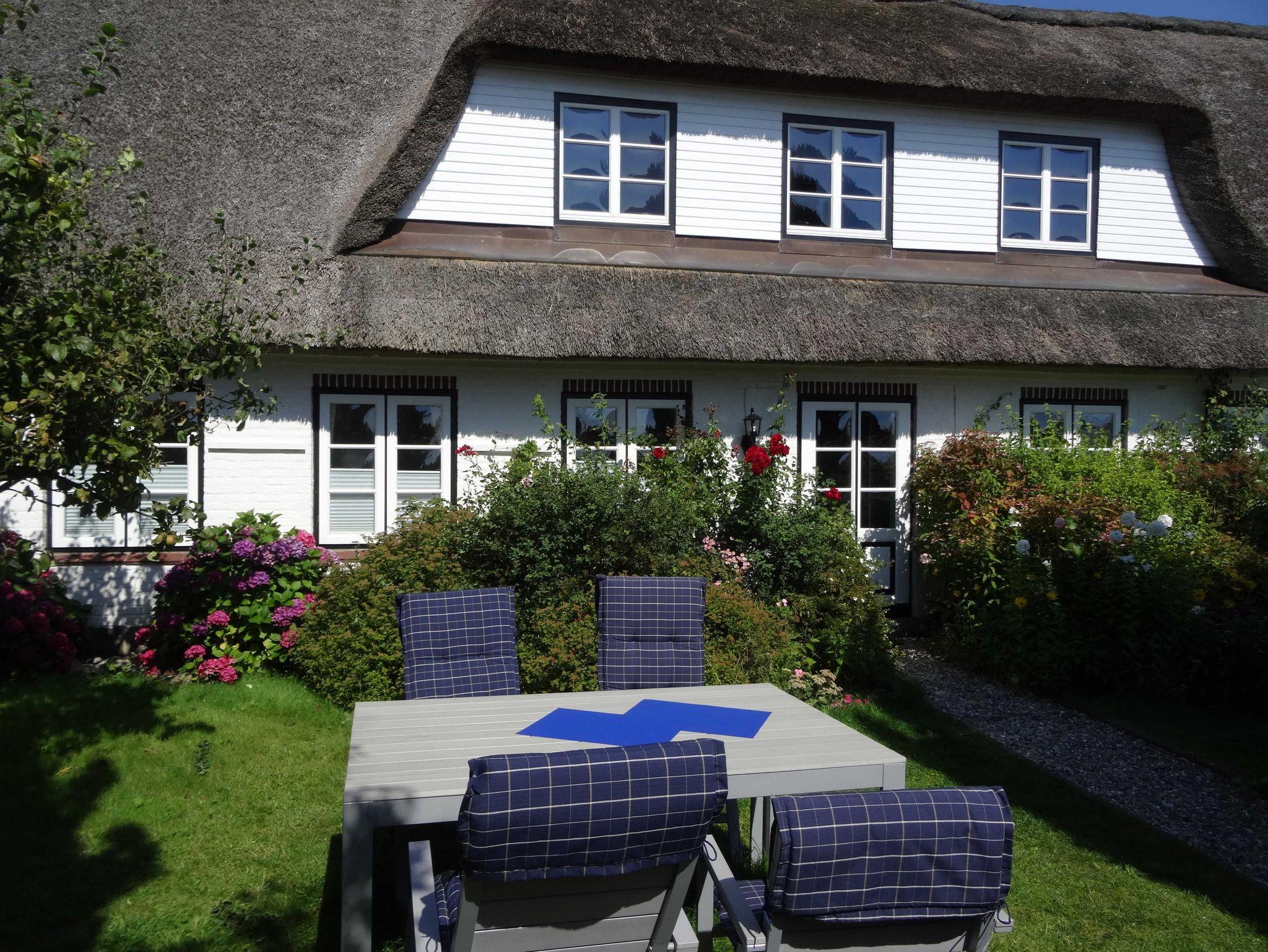 Die 2 Zimmer Ferienwohnung (ca. 50 m²) finden Sie im Obergeschoß des wunderschönen Reetdachhauses. Im Garten finden Sie eine 4er Sitzecke mit Tisch und Sonnenschirm, die zu dieser Ferienwohnung gehören.