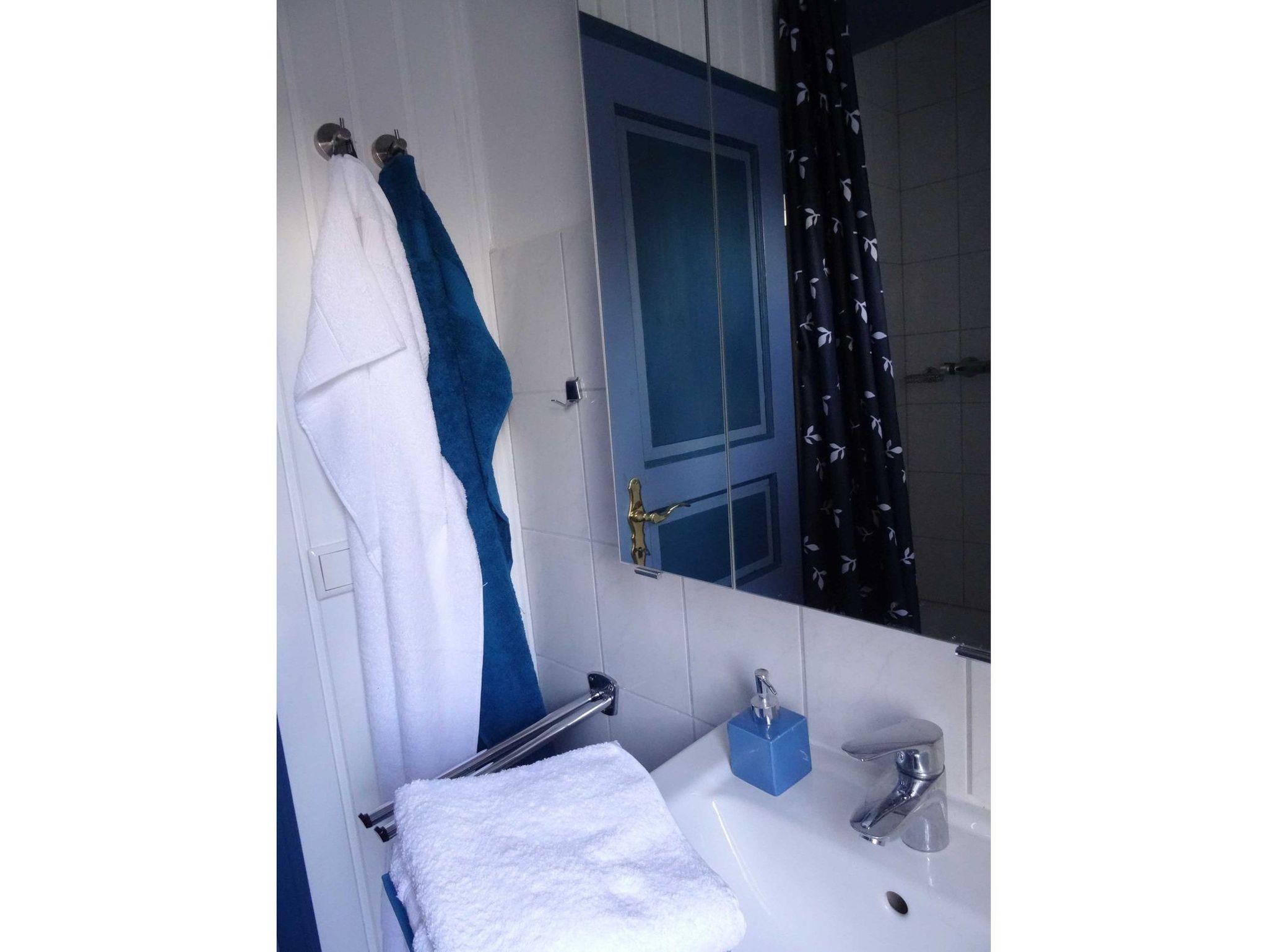 Neben einem herrlichen Ausblick vom Obergeschoss des Treppenhauses über Wiesen und Felder, befindet sich hier ein Putzraum und ein Raum für Waschmaschine und Trockner, die jeder Gast kostenlos nutzen kann.