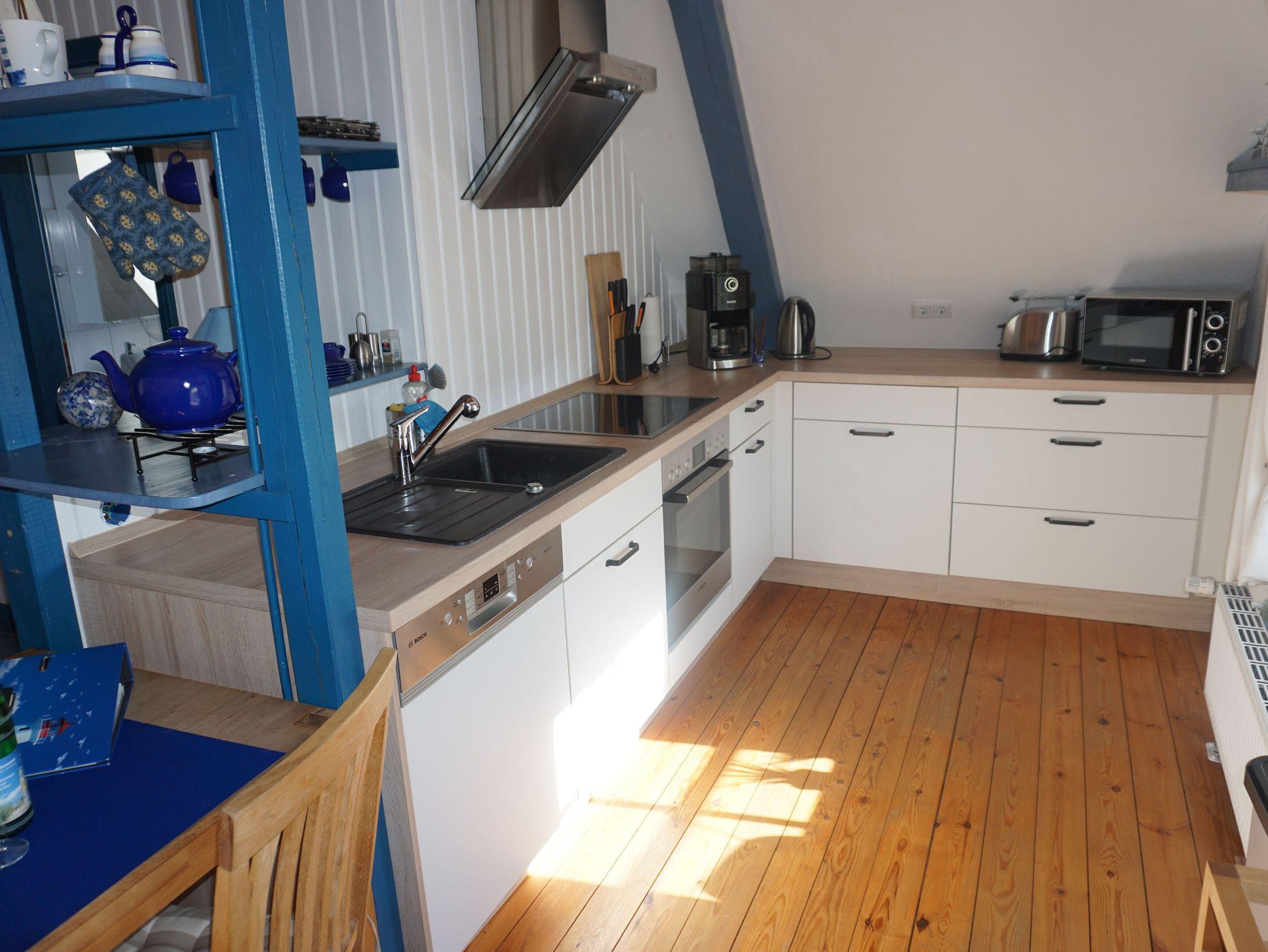 • neue Küche mit Cerankochfeld, Backofen, Geschirrspülmaschine, Kühlschrank mit 2 Gefrierfächern, Mikrowelle und allen notwendigen Küchenutensilien