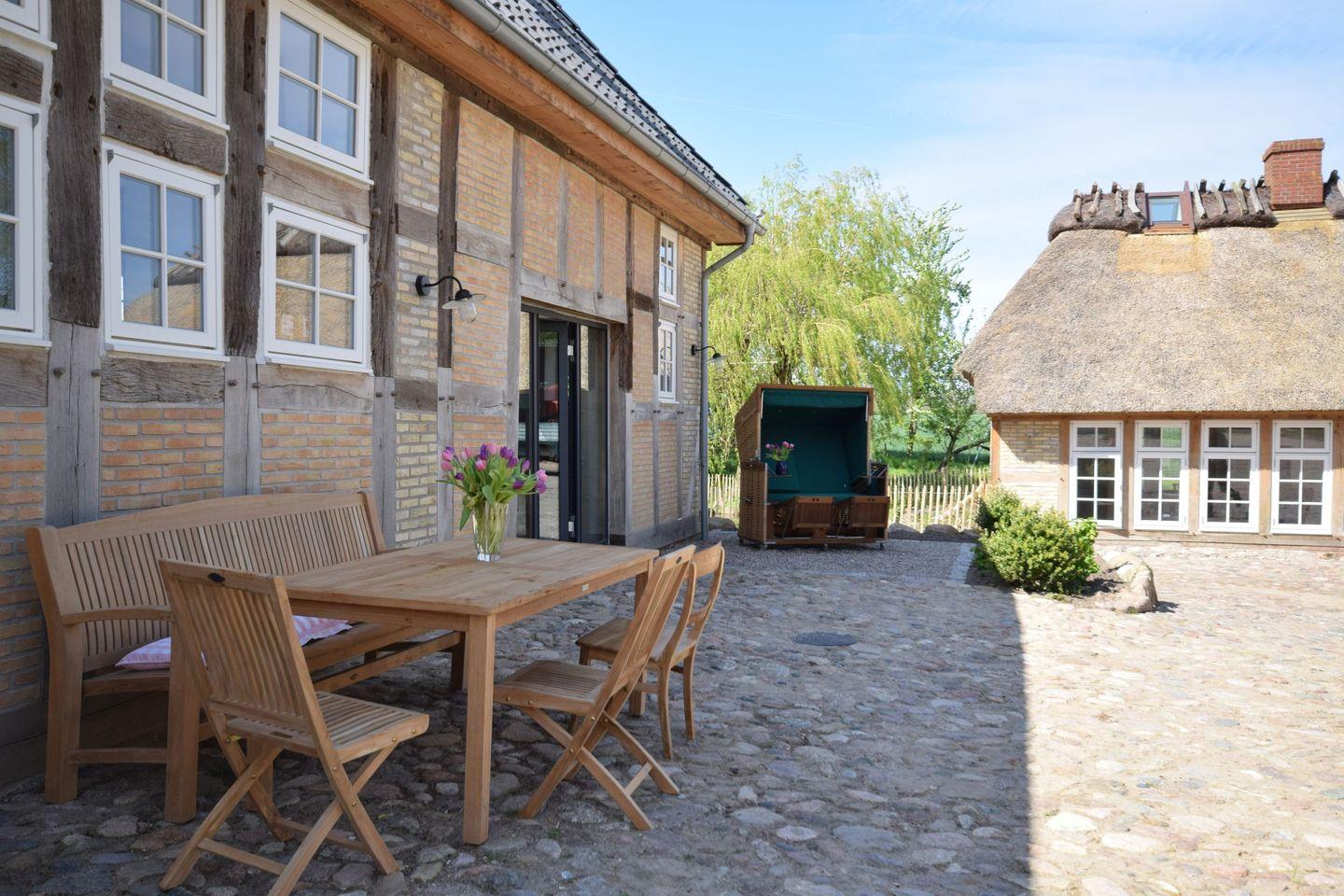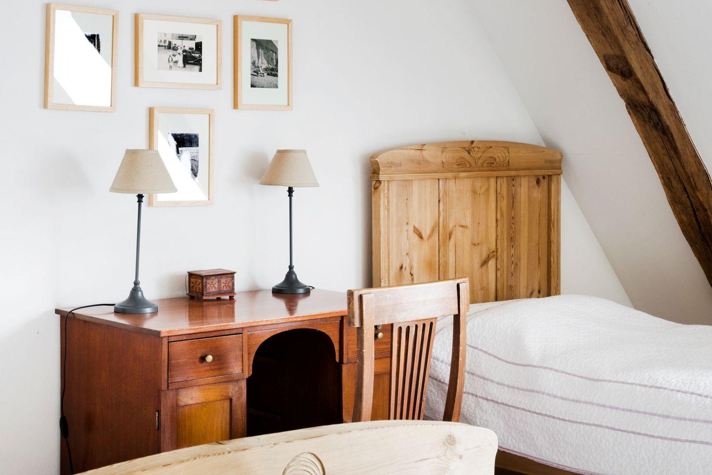 Bei Bedarf kann im benachbarten Kuhstall zusätzlich ein Gästezimmer (Kojenzimmer oder Alte Werkstatt) für zwei Personen mit eigenem Bad angemietet werden.