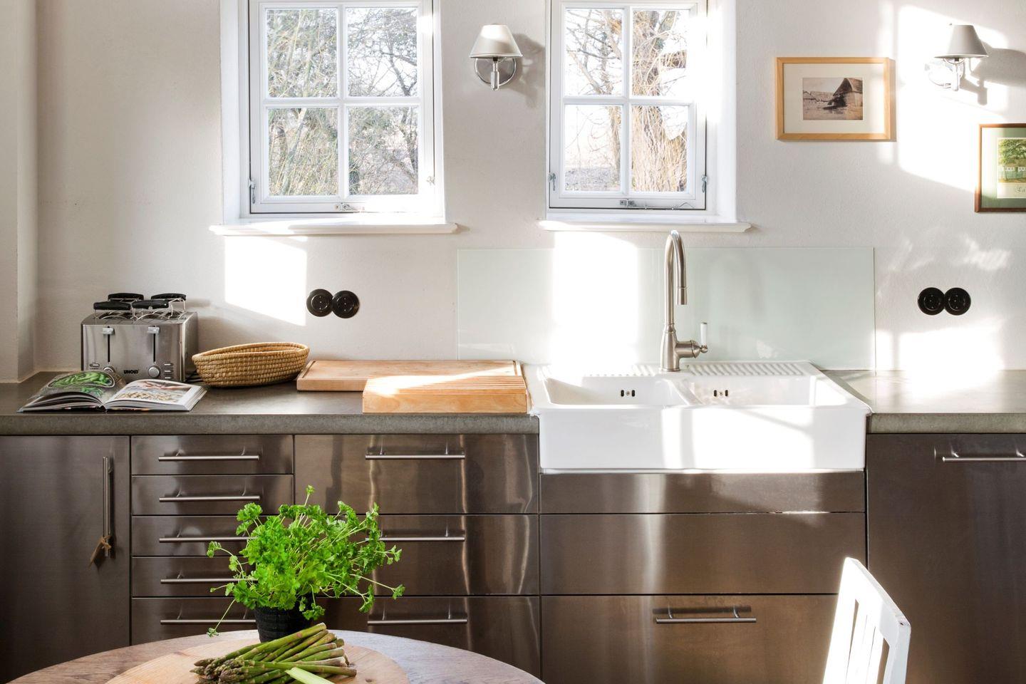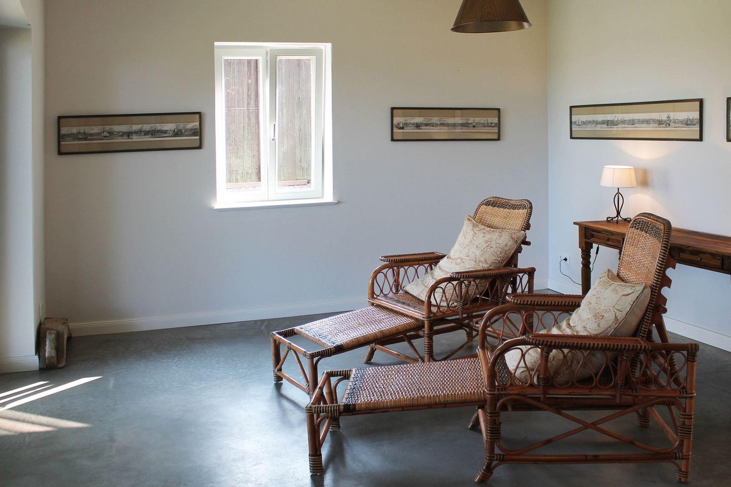 Für moderne Standards sorgen Fernseher, Stereoanlage und WLAN sowie die ebenfalls im Kuhstall angesiedelte Sauna mit Ruheraum und Blick auf den Leuchtturm von Falshöft.