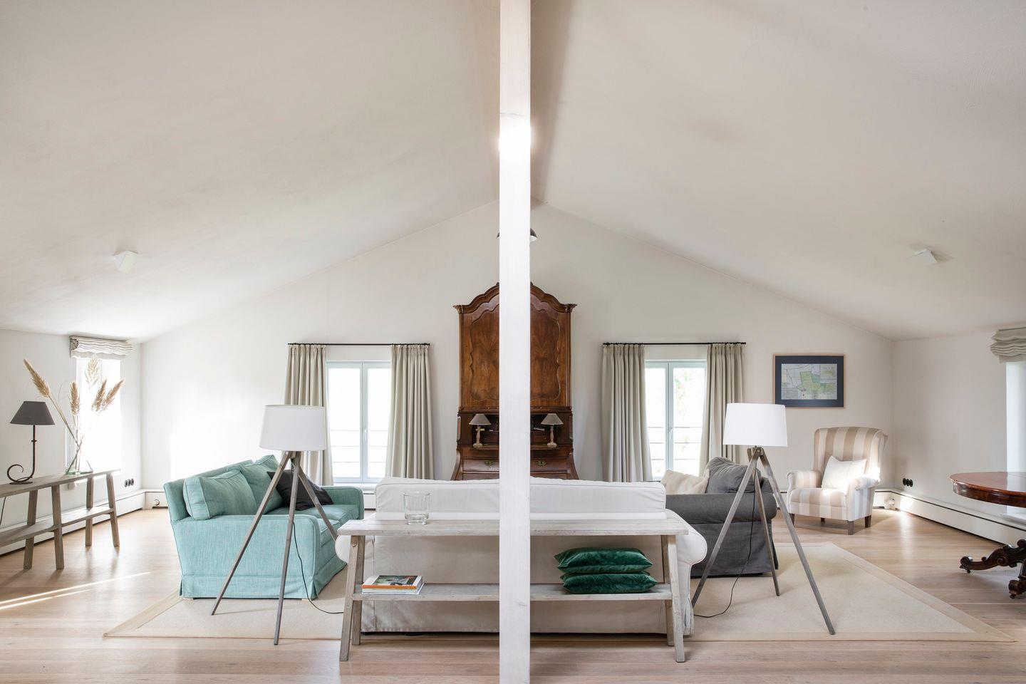 Der große Seminarraum mit seiner einmaligen Wohnzimmeratmosphäre und unverbautem Blick auf die Ostsee ist dank seiner Einrichtung flexibel nutzbar - für lässiges, gemeinsames Brainstorming in der Sofa-Ecke, konzentrierten Arbeiten an Tischen oder gemeinsame Yoga-Sessions. Beamer, Leinwand, Flipcharts, Pinnwänden, Yogamatten sowie eine Kaffeeküche, in der auch regulär gekocht werden kann, gehören zur Ausstattung.