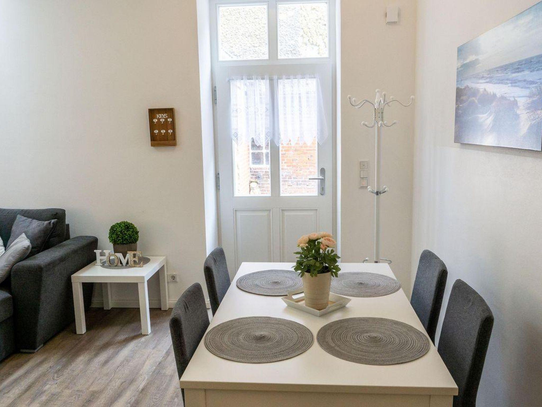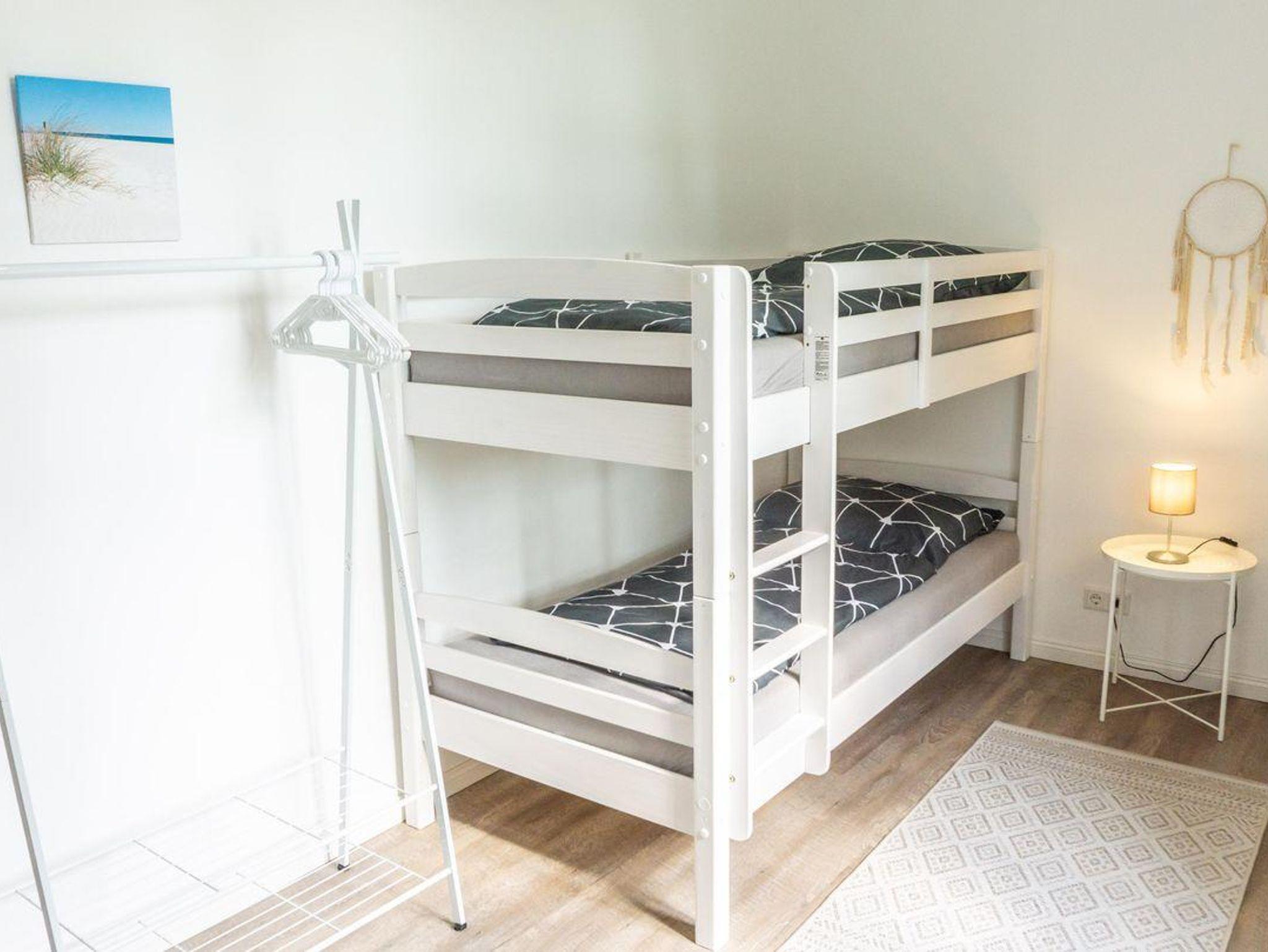 Auf 60 m² Wohnfläche bietet die Ferienwohnung komfortabel Platz für bis zu fünf Personen. Zwei Schlafzimmer mit einem Doppelbett (200x180cm) und ein Etagenbett für 2 ( 200x90) sowie ein Schlafsofa im Wohnbereich für eine Person bieten flexible Schlafmöglichkeiten, sodass sowohl Familien mit Kindern, Babys und Jugendlichen als auch Paare oder kleinere Gruppen den Aufenthalt genießen können. Die Parterrewohnung ist über einen privaten Eingang erreichbar und verfügt über Sichtschutz an allen Fenstern, was für Privatsphäre sorgt. Die Fußbodenheizung, moderne Vinylböden im Wohnzimmer und eine angenehme Raumaufteilung schaffen ein wohnliches und gemütliches Ambiente, in dem Sie sich zu jeder Jahreszeit wohlfühlen können.
