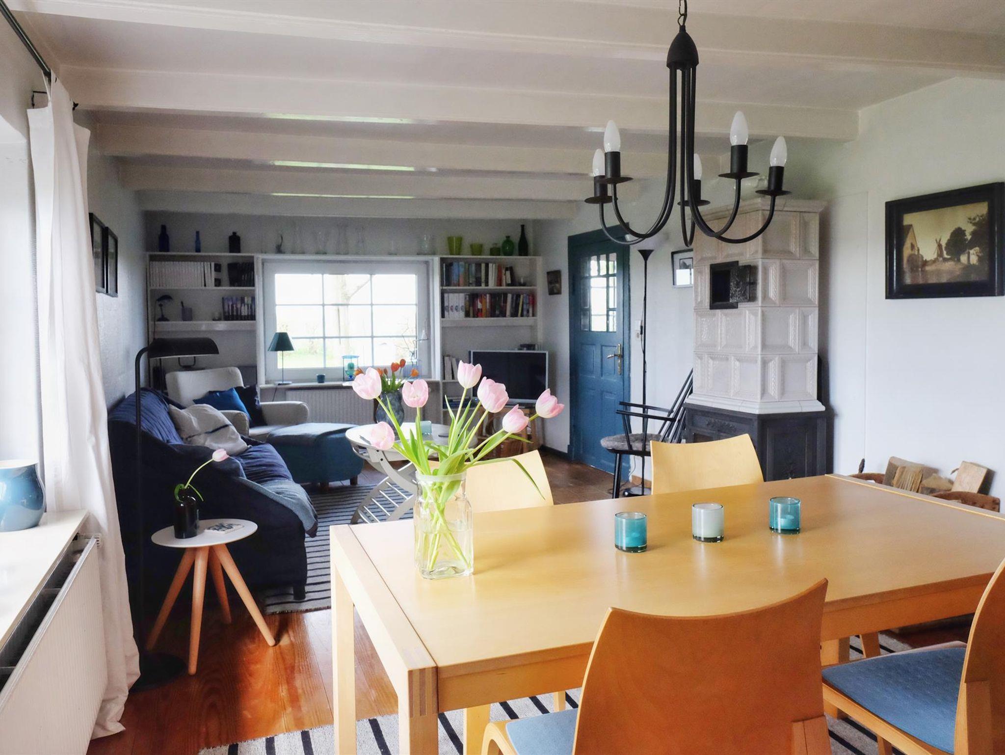 Die gemütliche, komfortable Reetdachkate bietet im Erdgeschoss und im ausgebauten Dachgeschoss auf 100qm reichlich Platz für 4 Personen.Der große Wohnbreich mit Essecke und behaglichem Kachelofen lädt zum Verweilen ein. Die komplett ausgestattete Küche mit Spülmaschine, Backofen, 4-Platten-Herd bietet alles, was Sie für den Urlaubshaushalt benötigen. Im Erdgeschoss befindet sich ein Schlafraum mit einem Doppelbett, den zweiten Schlafraum mit einem Doppelbett finden Sie im Obergeschoss. Ein Duschbad mit WC sowie ein Wannenbad mit WC liegen im Erdgeschoss. Zusätzlich gibt es im Obergeschoss ein zusätzliches WC. Auf Wunsch können Kinderbett und Hochstuhl bereit gestellt werden.