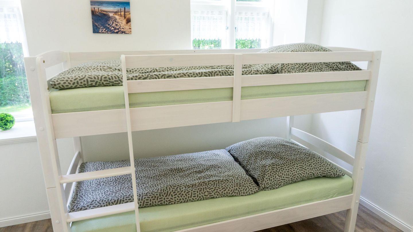 Die Aufteilung umfasst insgesamt 3 Zimmer, wovon 2 als Schlafzimmer gestaltet sind mit einem Doppelbett (200x180cm) und ein Etagenbett für 2 mit den Maßen (200x90cm) . Insgesamt finden bis zu 4 Personen komfortabel Platz. Die Unterkunft eignet sich hervorragend für Familien, Paare oder Freundesgruppen, wobei auch Babys und Kinder herzlich willkommen sind. Für Kleinkinder stehen ein Hochstuhl und ein Babybett bereit.
