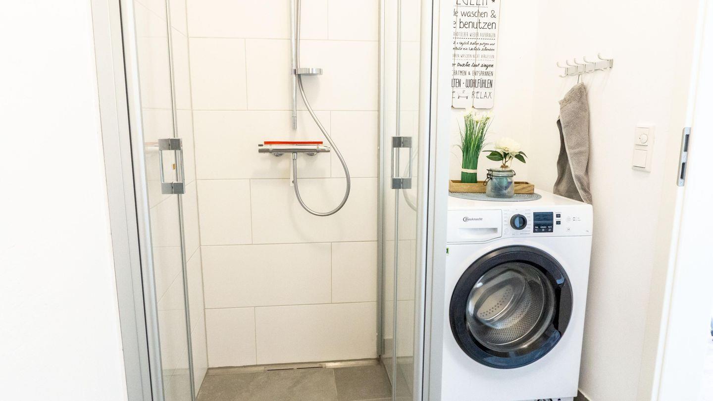 Das Badezimmer ist mit einer bodengleichen Dusche, WC, Waschbecken, Spiegel, Haartrockner sowie Handtüchern und Badetüchern ausgestattet. Alle Fenster sind mit Sichtschutz versehen, was Privatsphäre garantiert. Zu den weiteren Annehmlichkeiten zählen kostenloses WLAN und ein Internetzugang, sowohl ein Staubsauger als auch ein Wäscheständer, eine eigene Waschmaschine und die gemeinschaftliche Nutzung eines Trockners.