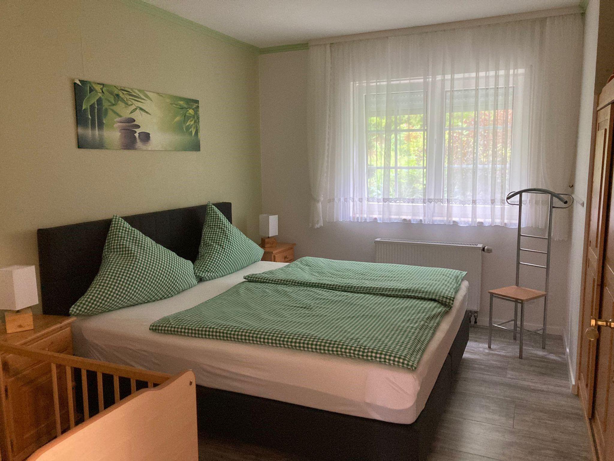 Ferienwohnung 1 (55qm) bietet Platz für bis zu 4 Personen. Ein Schlafzimmer mit Doppelbett,
