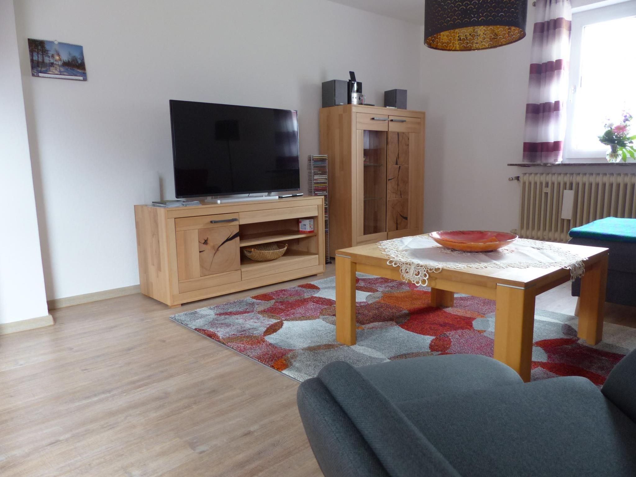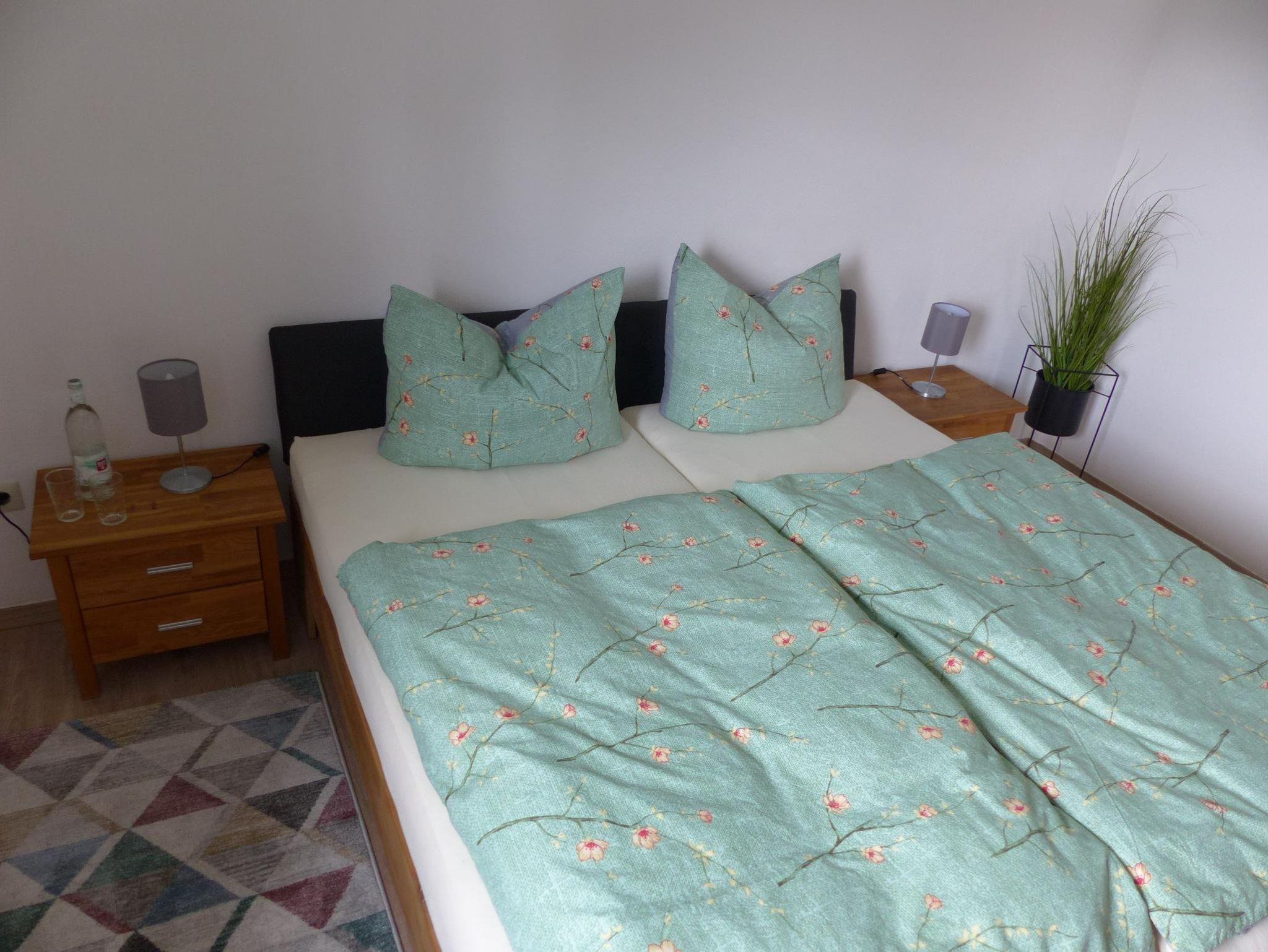 Die helle Ferienwohnung mit ca. 68 qm Grundfläche liegt im Erdgeschoss des Einfamilienhauses und ist insbesondere für ruhesuchende Erwachsene oder Paare mit einem Kleinkind geeignet (Kinderbett kann kostenlos zur Verfügung gestellt werden). Der großzügige Wohn-Essbereich mit Ecksofa und Relaxsessel laden zum Entspannen und Verweilen ein. Sat-TV, Stereoanlage, kostenloses WLAN und eine Auswahl an Spielen und Bücher lassen keine Langweile aufkommen. Die Küche ist mit einem E-Herd mit Backofen, Kühlschrank, Toaster, und einer Nespresso Kaffeemaschine gut ausgestattet. Die Dusche/WC liegen auf der gleicher Ebene und das Doppelzimmer mit einem Doppelbett mit hochwertigen Matratzen sorgen für einen erholsamen Schlaf. Ein 2. Schlafzimmer mit Doppelbett kann auf Anfrage im Obergeschoss dazu gebucht werden. Gesicherte Abstellmöglichkeit für E-Bikes und Lademöglichkeit sind im ebenerdig, zugänglichen Keller vorhanden. Das Rauchen in der FeWo ist nicht gestattet, Haustiere sind nicht erlaubt.