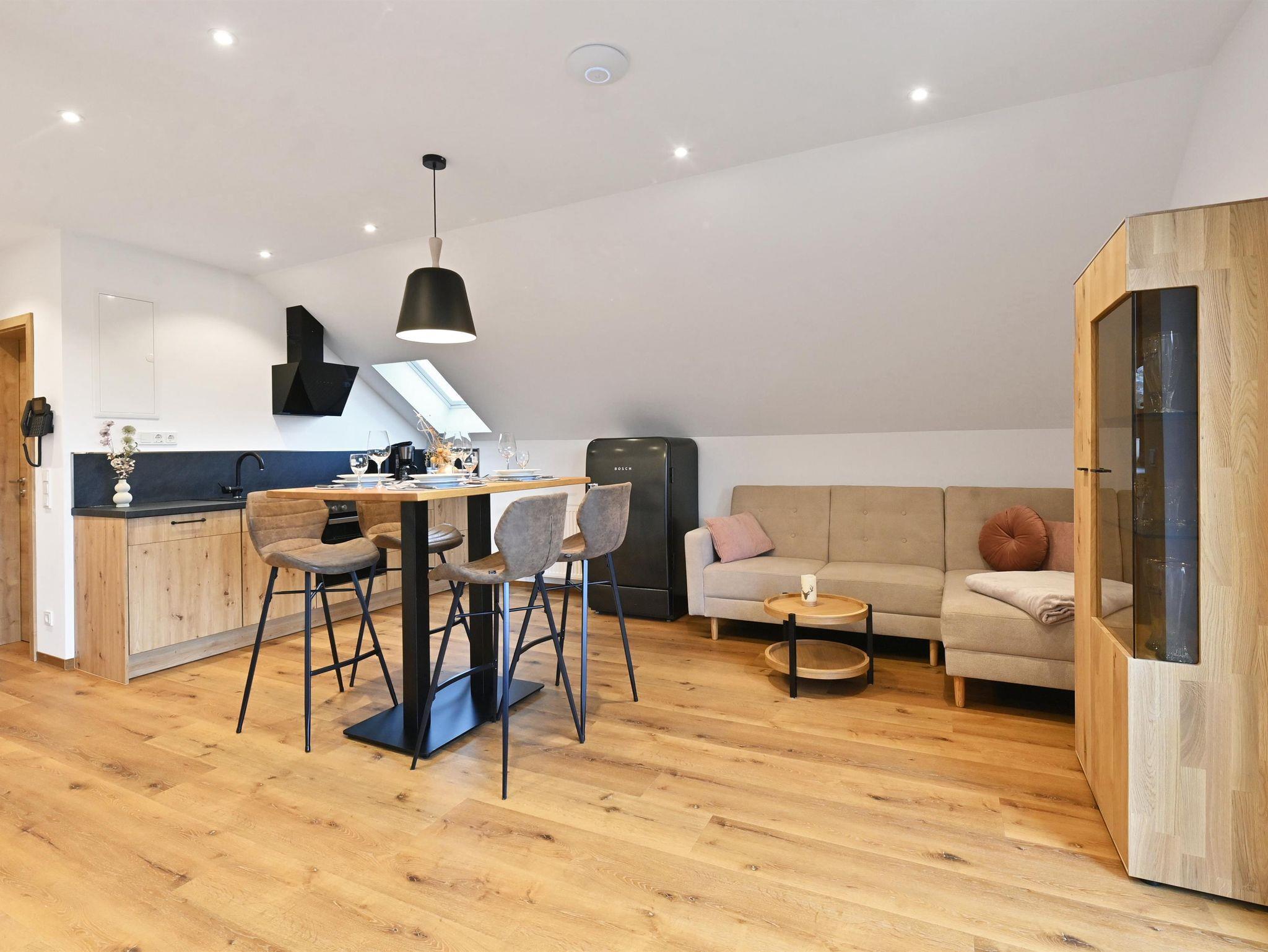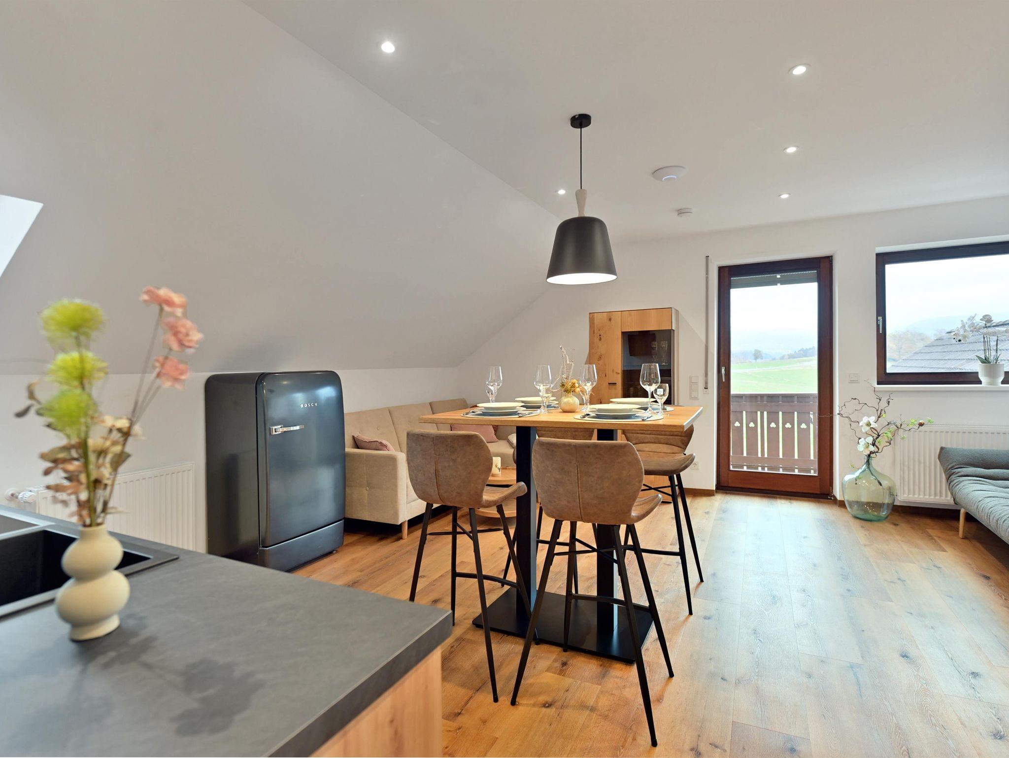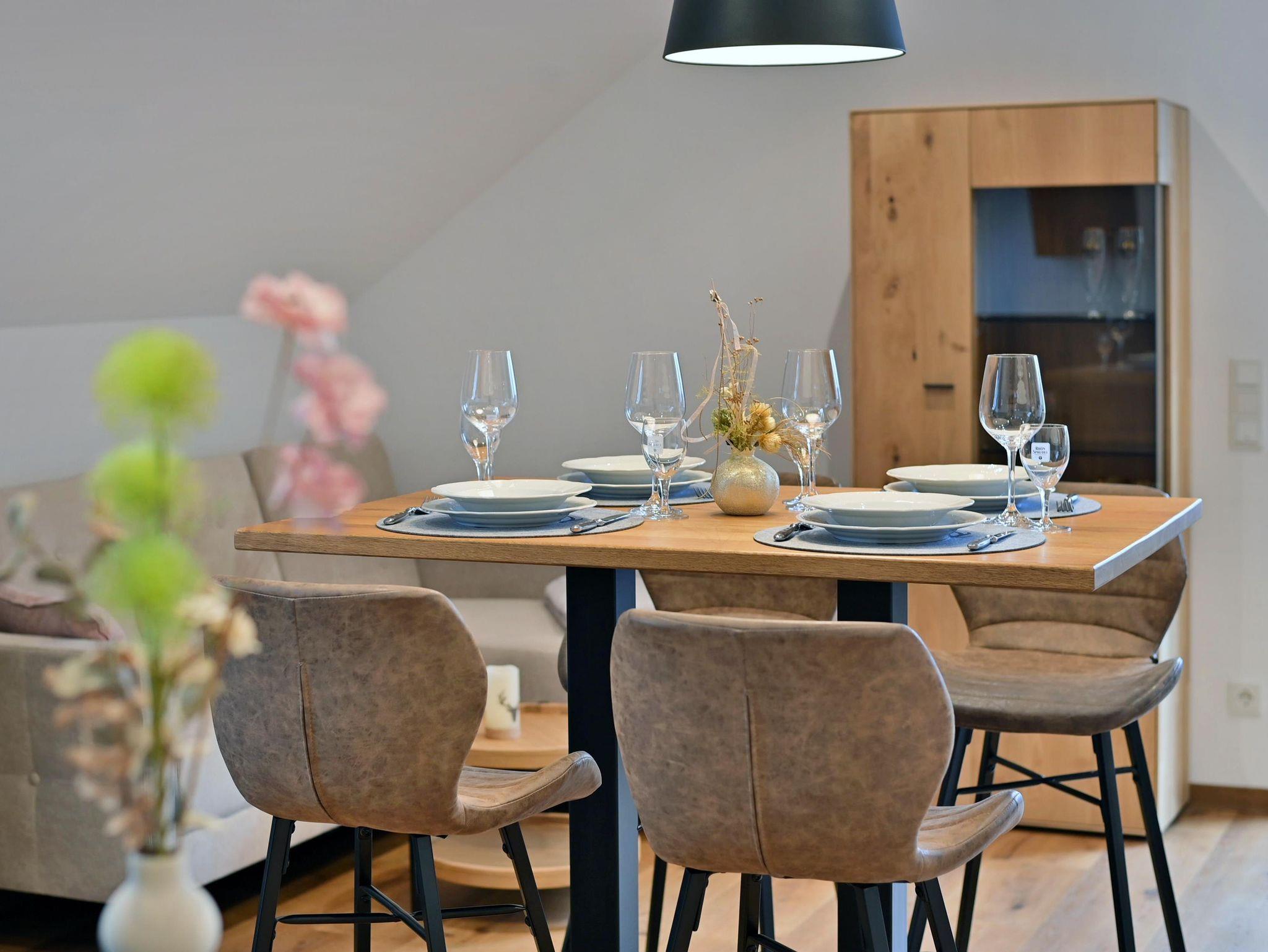 Im modernen Landhausstil eingerichtete Ferienwohnung in äußerst ruhiger Lage auf ca. 41qm mit großzügigem Balkon mit Blick auf die Wasserkuppe und die umliegende Rhöner Berglandschaft. Platz für 1-3 Personen. Gemütliches Wohn- Esszimmer mit TV. Komplett ausgestattete Küche mit Geschirrspüler, Kühlschrank inkl. Gefrierfach, Herd, Backofen, Wasserkocher und Kaffeemaschine. Schlafzimmer mit Doppelbett. Badezimmer mit Dusche/WC, großem beleuchtetem Spiegel, Kosmetikspiegel. WLAN und Parkplatz kostenfrei. Frühstück und Brötchenservice buchbar. Alle Wohnungen verfügen über Brandschutztüren und Rauchmeldeanlage. Ski- und Fahrradraum. Poppenhausen ist 4km, Gersfeld 6km entfernt. Bushaltestelle in 3 Gehminuten vom Haus. Shuttleservice buchbar.