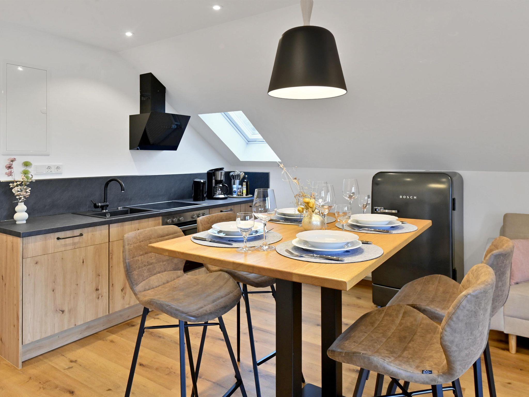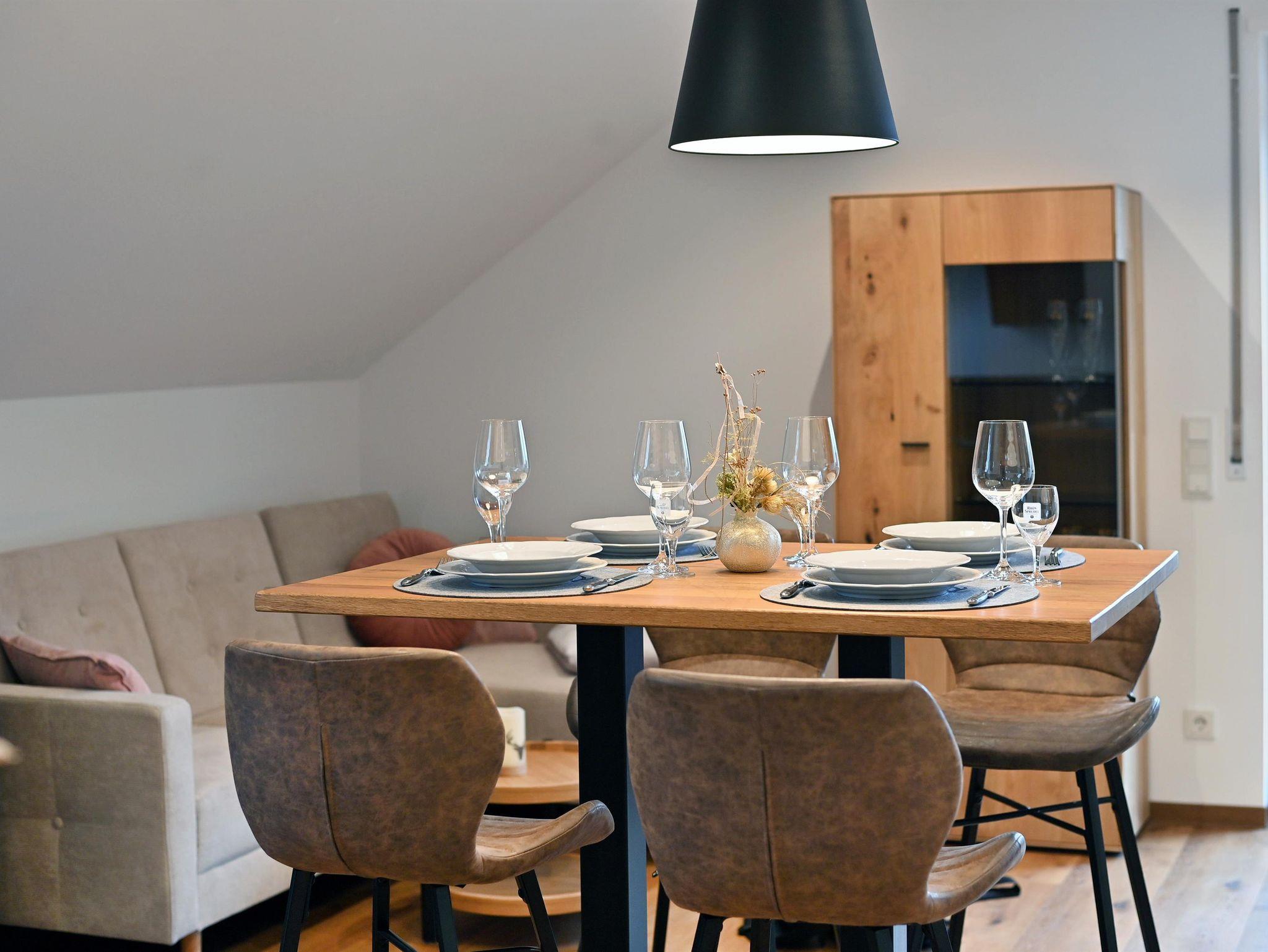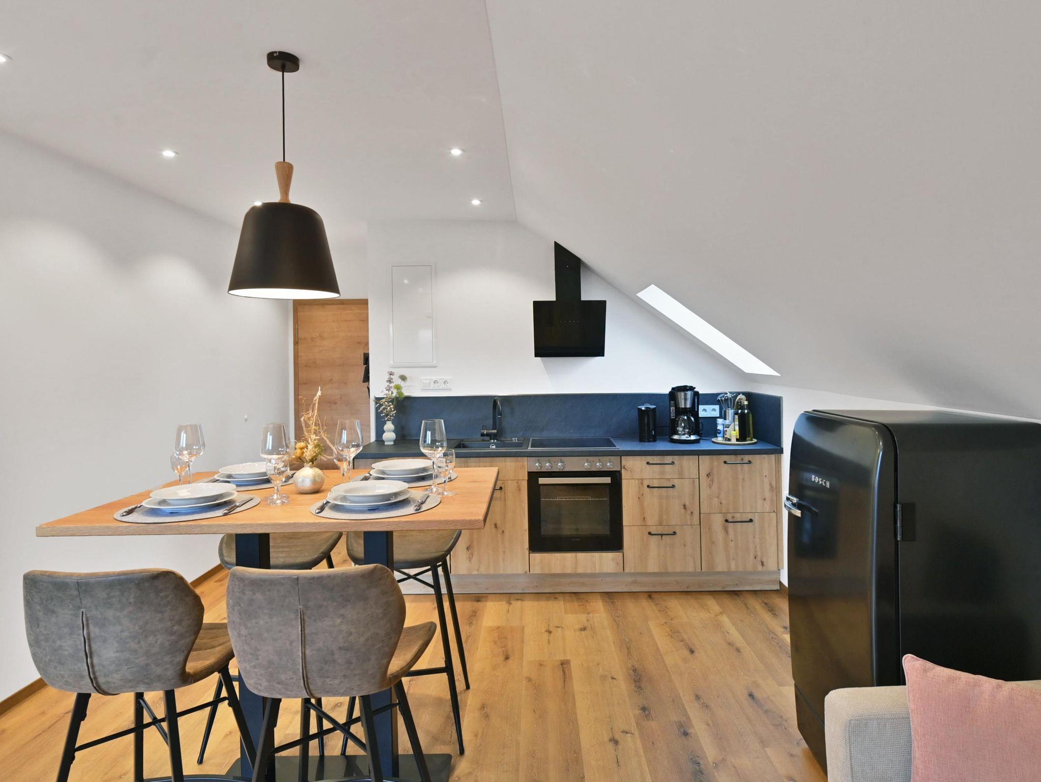 Im modernen Landhausstil eingerichtete Ferienwohnung in äußerst ruhiger Lage auf ca. 41qm mit großzügigem Balkon mit Blick auf die Wasserkuppe und die umliegende Rhöner Berglandschaft. Platz für 1-3 Personen. Gemütliches Wohn- Esszimmer mit TV. Komplett ausgestattete Küche mit Geschirrspüler, Kühlschrank inkl. Gefrierfach, Herd, Backofen, Wasserkocher und Kaffeemaschine. Schlafzimmer mit Doppelbett. Badezimmer mit Dusche/WC, großem beleuchtetem Spiegel, Kosmetikspiegel. WLAN und Parkplatz kostenfrei. Frühstück und Brötchenservice buchbar. Alle Wohnungen verfügen über Brandschutztüren und Rauchmeldeanlage. Ski- und Fahrradraum. Poppenhausen ist 4km, Gersfeld 6km entfernt. Bushaltestelle in 3 Gehminuten vom Haus. Shuttleservice buchbar.