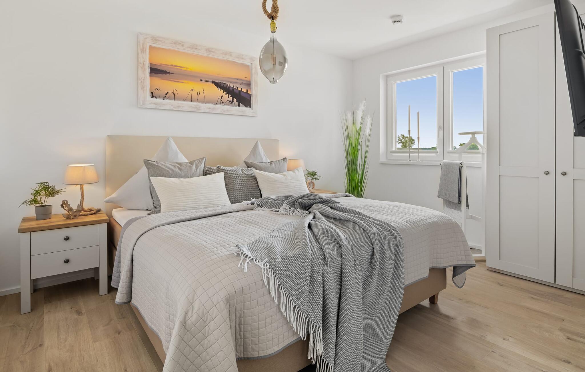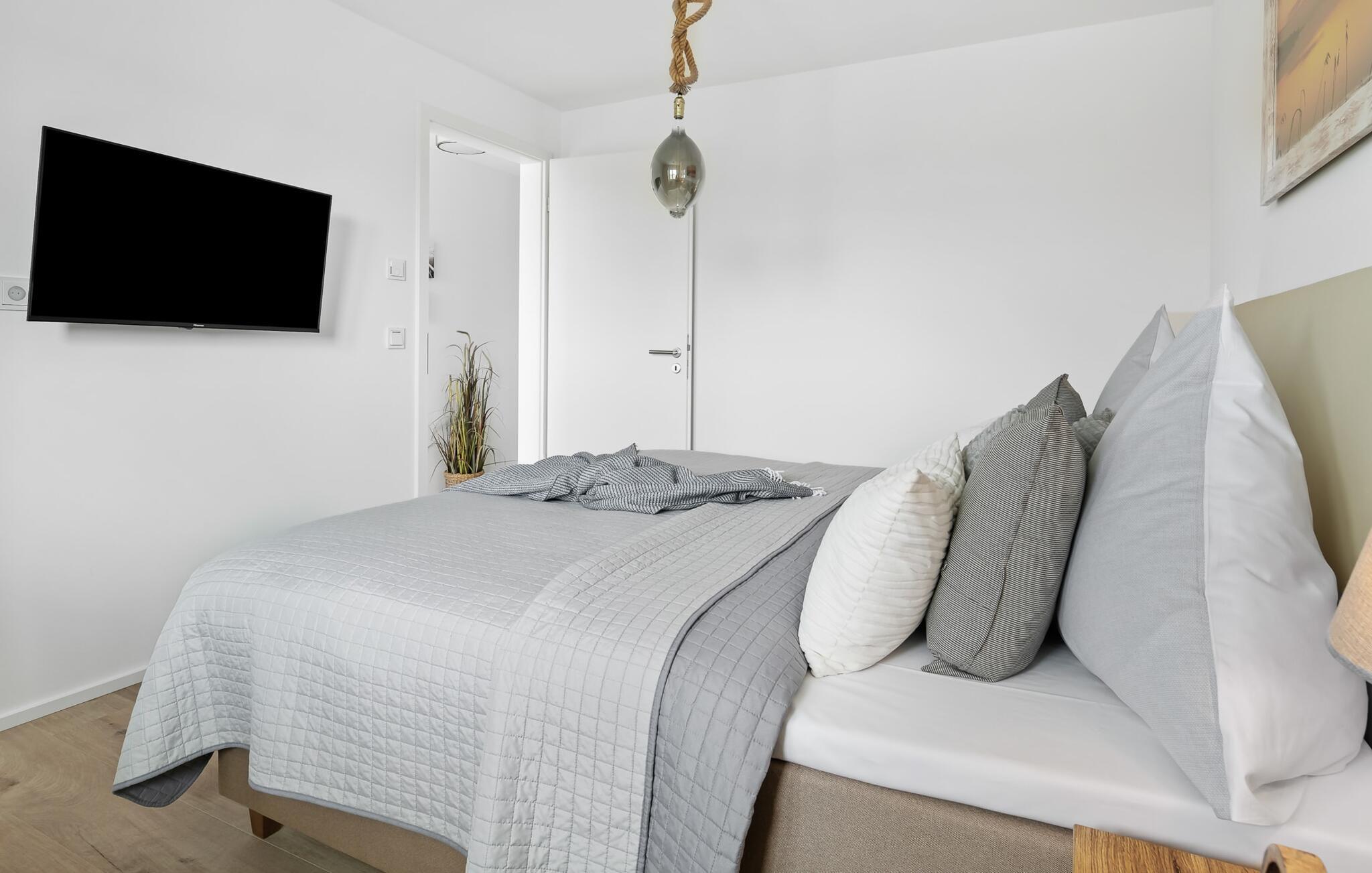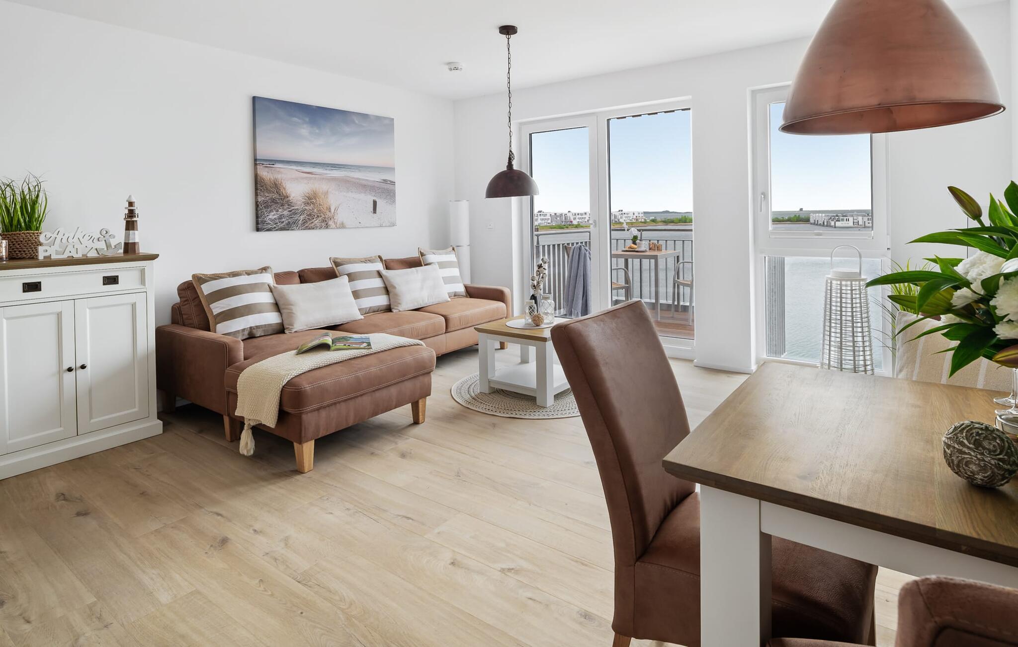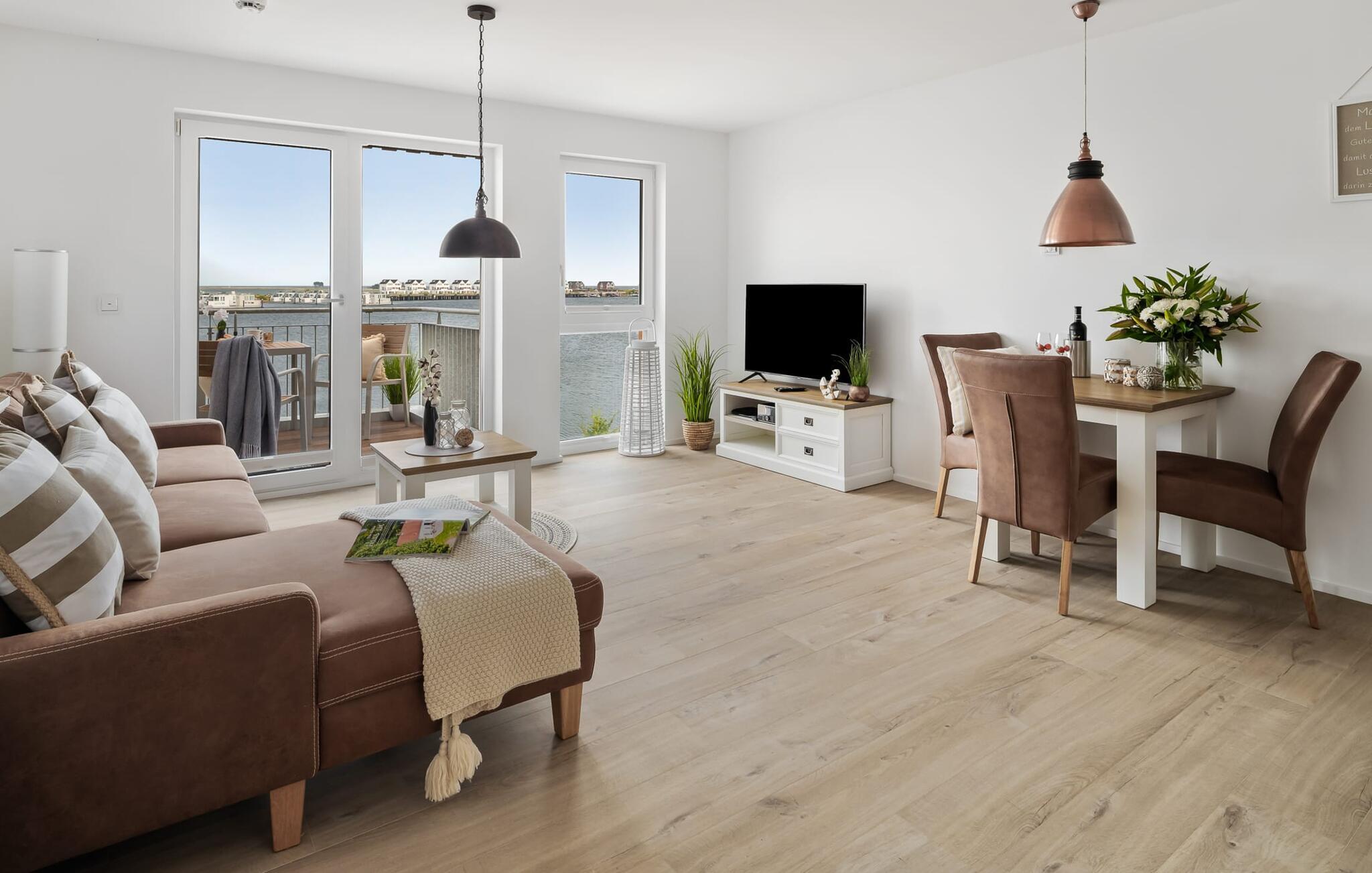 Ferielejligheden PORT OLPENITZ ligger direkte på havnepromenaden i feriestedet Olpenitz ved Østersøen og byder på alt, hvad I kan forestille jer til en afslappende ferie ved vandet. Promenaden med sine små fristende butikker og et velassorteret EDEKA-marked med bageri ligger bogstaveligt talt for gæstens fødder og indbyder til slentretur og indkøb. Sandstranden Weidefelder ligger i umiddelbar nærhed og er et MUST! Her er smukt på alle tider af året, ikke kun når strandstolene kalder om sommeren. I kan tage endeløse gåture her på den åbne Østersø og lade hverdagen bag jer. Mens I laver mad, spiser, læser avis eller bare hygger jer i det kombinerede, åbne køkken-alrum-alrum, følger udsigten over det brede vand jer konstant. I kan se gennem gulv til loft-vinduerne ud over altanen til sejlsportsbådshavnen, de flydende huse, østersøfjorden Slien og Slimünde fyrtårn. Et fænomenalt syn, der hele tiden er i bevægelse. Denne særlige atmosfære inviterer til en hyggelig grillaften på altanen. Faktisk behøver I slet ikke et tv, men PORT OLPENITZ tilbyder jer to: en i stue/spisestue og en i soveværelset. Den moderne, højkvalitets og smagfulde indretning samt det veludstyrede køkken bidrager til afslapning, ligesom den komfortable dobbeltseng, der forudsiger afslappende nætter. Der er en sofa i stuen til en ekstra person, som nemt kan omdannes. Og I behøver ikke bekymre jer om opbevaringsplads – der er masser af skabsplads. Badeværelset med bruser på gulvniveau kan nemt rumme tre personer. jeres pakke inkluderer en parkeringsplads ved huset og en elevator, der bringer jer komfortabelt til lejligheden på anden sal. Vores foretrukne sted: Bestem selv, når I udforsker Port Olpenitz... Bemærk venligst: OstseeResort Olpenitz er meget populært, og der bygges fortsat i parken. Ikke desto mindre kan I se frem til en 5-stjernet standard og et førsteklasses ophold. Byggeaktiviteterne kommer ikke til at forstyrre jer på ferien, og derfor gives der ikke yderligere afslag i prisen.