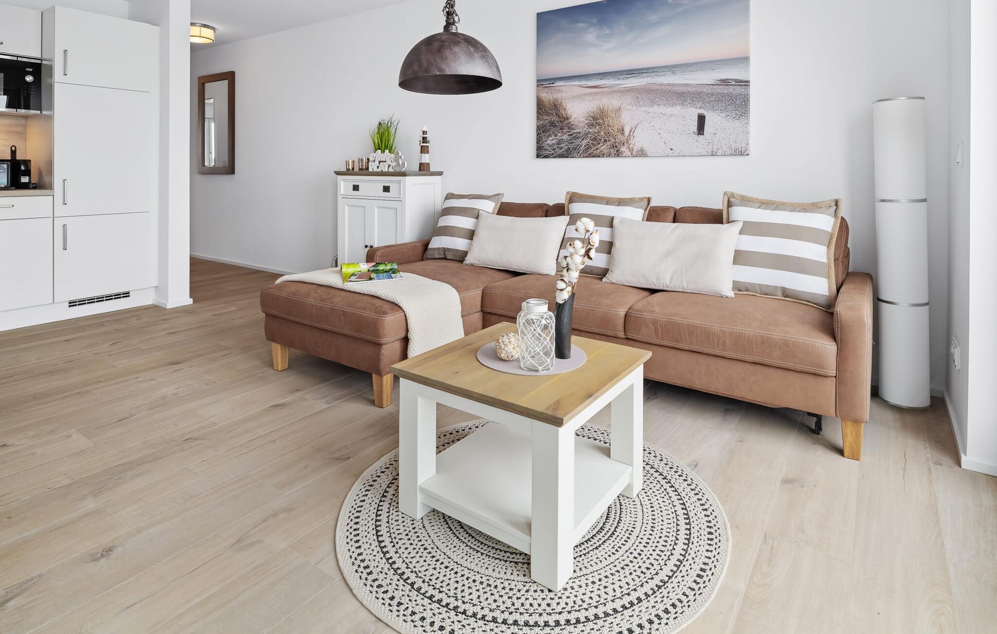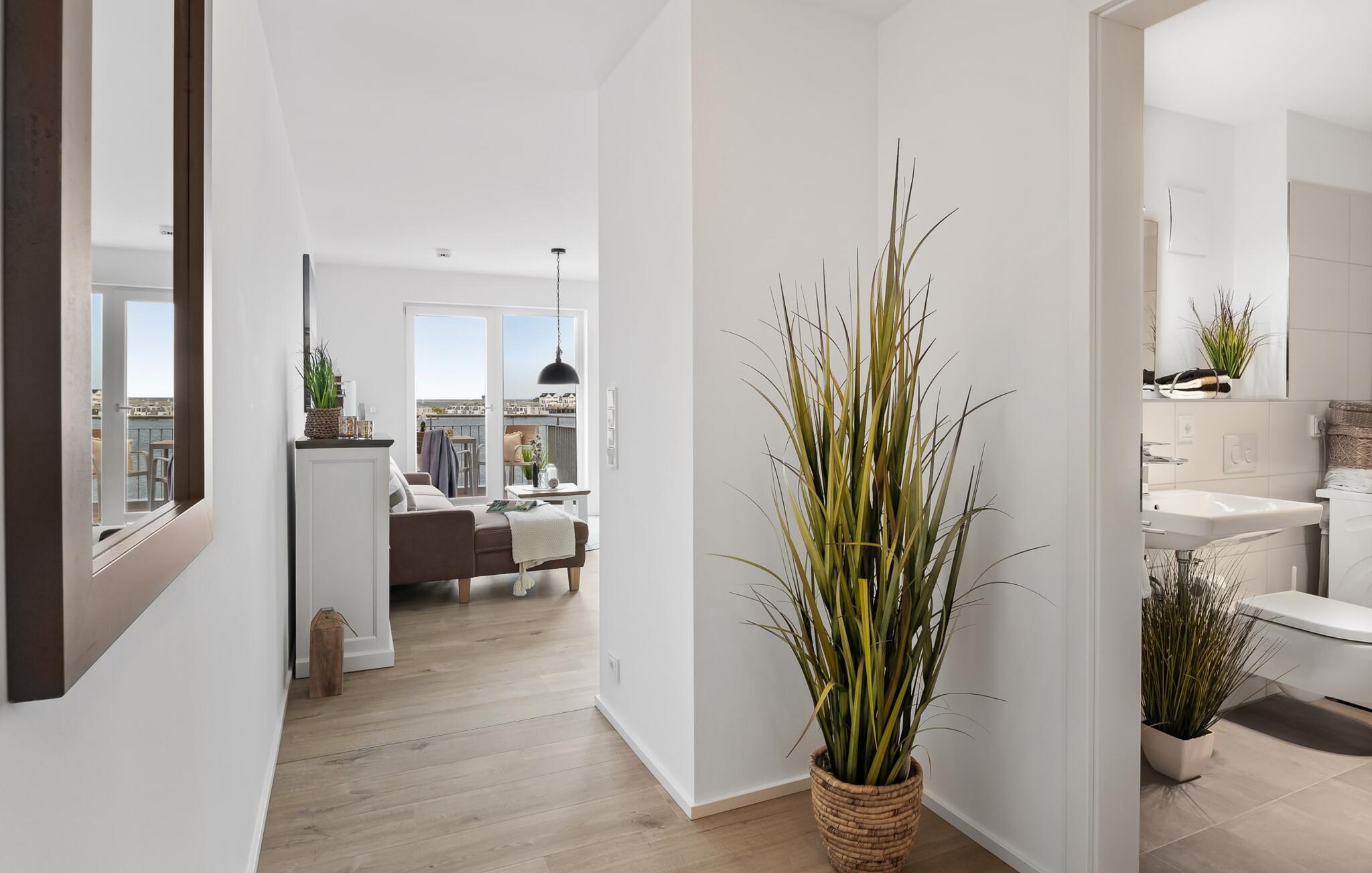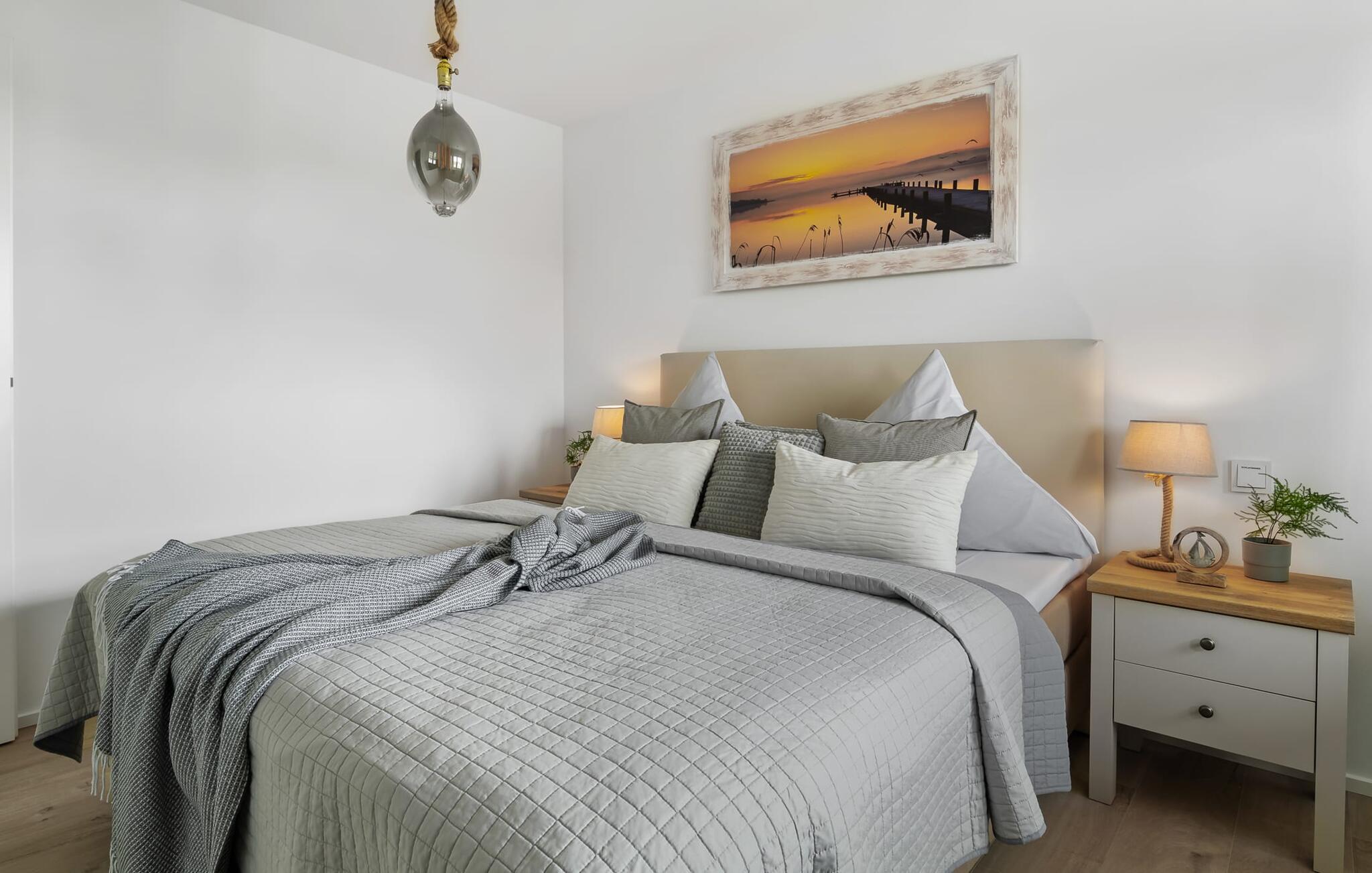 Ferielejligheden PORT OLPENITZ ligger direkte på havnepromenaden i feriestedet Olpenitz ved Østersøen og byder på alt, hvad I kan forestille jer til en afslappende ferie ved vandet. Promenaden med sine små fristende butikker og et velassorteret EDEKA-marked med bageri ligger bogstaveligt talt for gæstens fødder og indbyder til slentretur og indkøb. Sandstranden Weidefelder ligger i umiddelbar nærhed og er et MUST! Her er smukt på alle tider af året, ikke kun når strandstolene kalder om sommeren. I kan tage endeløse gåture her på den åbne Østersø og lade hverdagen bag jer. Mens I laver mad, spiser, læser avis eller bare hygger jer i det kombinerede, åbne køkken-alrum-alrum, følger udsigten over det brede vand jer konstant. I kan se gennem gulv til loft-vinduerne ud over altanen til sejlsportsbådshavnen, de flydende huse, østersøfjorden Slien og Slimünde fyrtårn. Et fænomenalt syn, der hele tiden er i bevægelse. Denne særlige atmosfære inviterer til en hyggelig grillaften på altanen. Faktisk behøver I slet ikke et tv, men PORT OLPENITZ tilbyder jer to: en i stue/spisestue og en i soveværelset. Den moderne, højkvalitets og smagfulde indretning samt det veludstyrede køkken bidrager til afslapning, ligesom den komfortable dobbeltseng, der forudsiger afslappende nætter. Der er en sofa i stuen til en ekstra person, som nemt kan omdannes. Og I behøver ikke bekymre jer om opbevaringsplads – der er masser af skabsplads. Badeværelset med bruser på gulvniveau kan nemt rumme tre personer. jeres pakke inkluderer en parkeringsplads ved huset og en elevator, der bringer jer komfortabelt til lejligheden på anden sal. Vores foretrukne sted: Bestem selv, når I udforsker Port Olpenitz... Bemærk venligst: OstseeResort Olpenitz er meget populært, og der bygges fortsat i parken. Ikke desto mindre kan I se frem til en 5-stjernet standard og et førsteklasses ophold. Byggeaktiviteterne kommer ikke til at forstyrre jer på ferien, og derfor gives der ikke yderligere afslag i prisen.