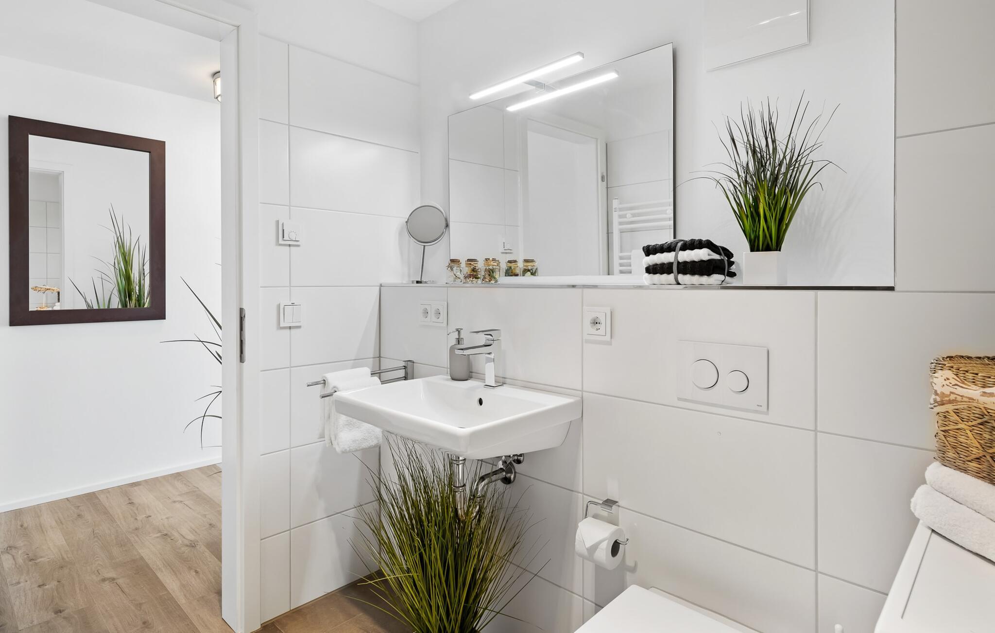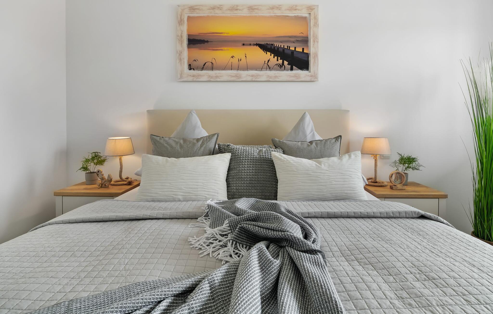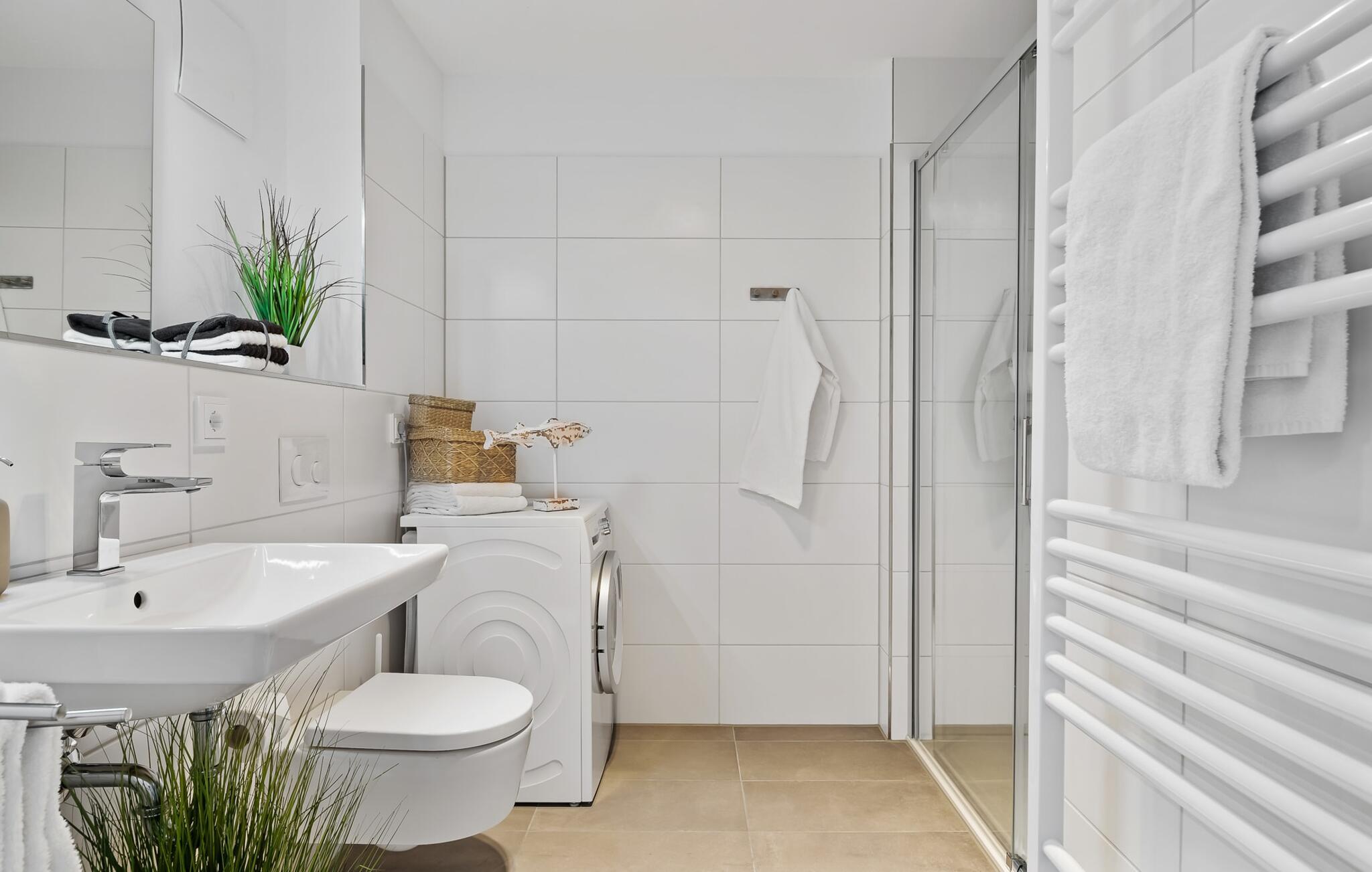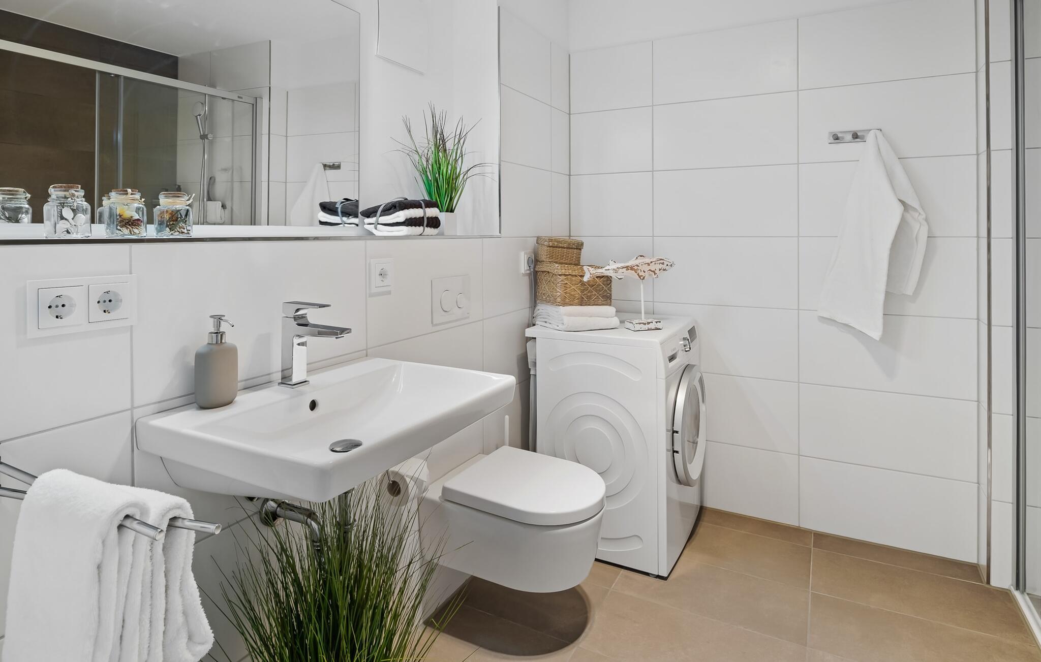 Ferielejligheden PORT OLPENITZ ligger direkte på havnepromenaden i feriestedet Olpenitz ved Østersøen og byder på alt, hvad I kan forestille jer til en afslappende ferie ved vandet. Promenaden med sine små fristende butikker og et velassorteret EDEKA-marked med bageri ligger bogstaveligt talt for gæstens fødder og indbyder til slentretur og indkøb. Sandstranden Weidefelder ligger i umiddelbar nærhed og er et MUST! Her er smukt på alle tider af året, ikke kun når strandstolene kalder om sommeren. I kan tage endeløse gåture her på den åbne Østersø og lade hverdagen bag jer. Mens I laver mad, spiser, læser avis eller bare hygger jer i det kombinerede, åbne køkken-alrum-alrum, følger udsigten over det brede vand jer konstant. I kan se gennem gulv til loft-vinduerne ud over altanen til sejlsportsbådshavnen, de flydende huse, østersøfjorden Slien og Slimünde fyrtårn. Et fænomenalt syn, der hele tiden er i bevægelse. Denne særlige atmosfære inviterer til en hyggelig grillaften på altanen. Faktisk behøver I slet ikke et tv, men PORT OLPENITZ tilbyder jer to: en i stue/spisestue og en i soveværelset. Den moderne, højkvalitets og smagfulde indretning samt det veludstyrede køkken bidrager til afslapning, ligesom den komfortable dobbeltseng, der forudsiger afslappende nætter. Der er en sofa i stuen til en ekstra person, som nemt kan omdannes. Og I behøver ikke bekymre jer om opbevaringsplads – der er masser af skabsplads. Badeværelset med bruser på gulvniveau kan nemt rumme tre personer. jeres pakke inkluderer en parkeringsplads ved huset og en elevator, der bringer jer komfortabelt til lejligheden på anden sal. Vores foretrukne sted: Bestem selv, når I udforsker Port Olpenitz... Bemærk venligst: OstseeResort Olpenitz er meget populært, og der bygges fortsat i parken. Ikke desto mindre kan I se frem til en 5-stjernet standard og et førsteklasses ophold. Byggeaktiviteterne kommer ikke til at forstyrre jer på ferien, og derfor gives der ikke yderligere afslag i prisen.