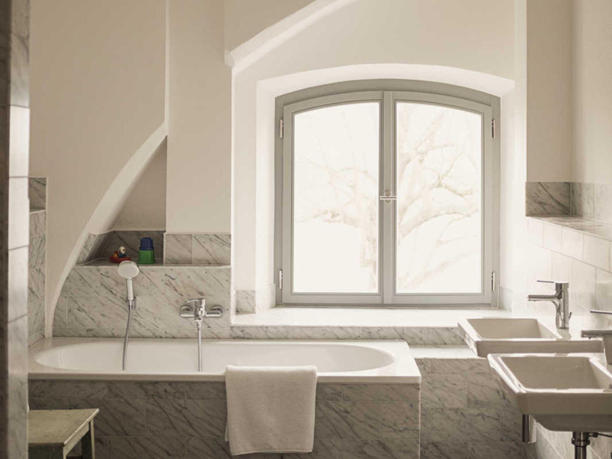 Die Grundmauern der alten Scheunenflächen des ehemaligen landwirtschaftlichen Guts sind wieder sichtbar gemacht worden. Der Ausblick von Haus und Park ist zu allen Seiten geprägt durch die Lage direkt am Wasser.