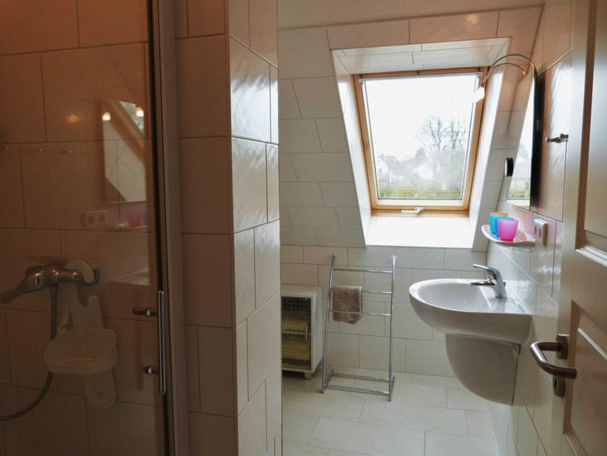 Bei Ihrer Anreise liegen frische Handtücher bereit und die Betten sind selbstverständlich bereits mit Bettwäsche bezogen. Das Bad ist mit Dusche, WC und Waschtisch ausgestattet und verfügt über Tageslicht. Zu dieser Ferienwohnung gehört auch eine schöne Terrasse mit Gartenmöbeln und Ausblick.