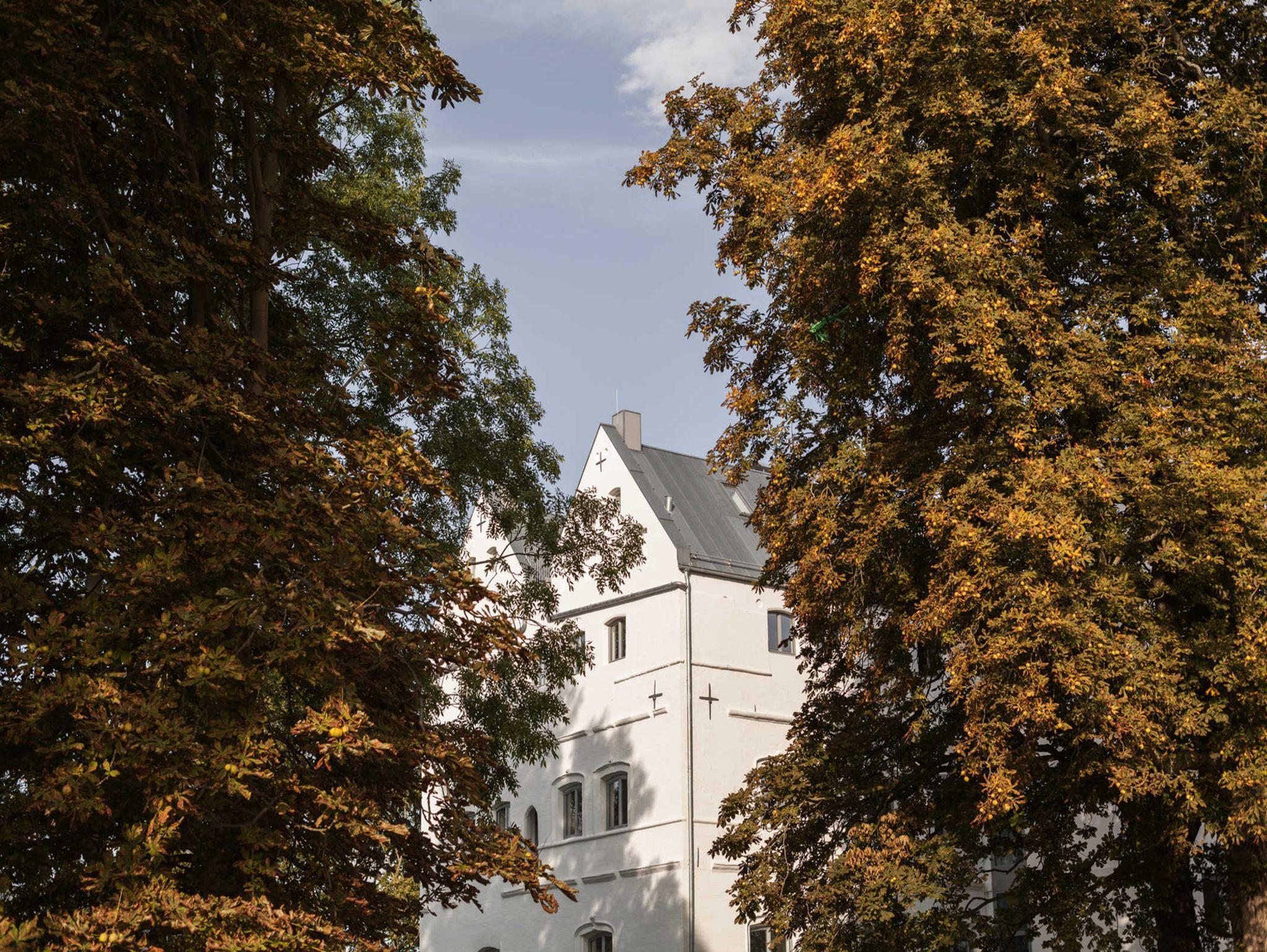 Die Grundmauern der alten Scheunenflächen des ehemaligen landwirtschaftlichen Guts sind wieder sichtbar gemacht worden. Der Ausblick von Haus und Park ist zu allen Seiten geprägt durch die Lage direkt am Wasser.