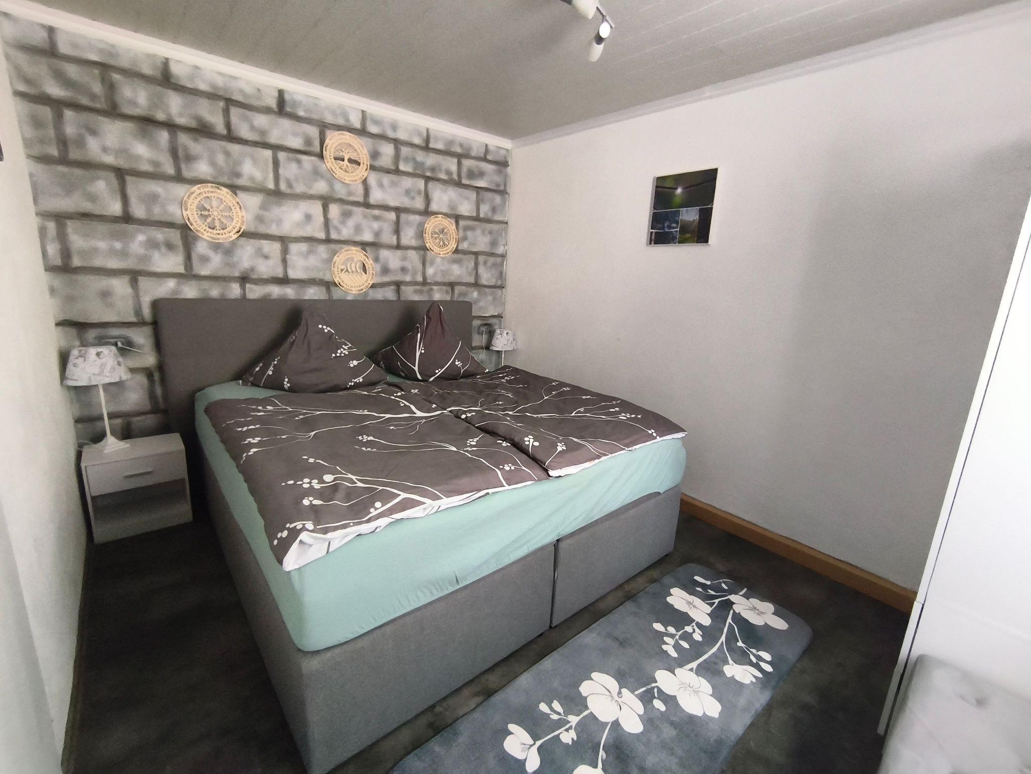 Sie verfügt über ein Schlafzimmer mit einem komfortablen Boxspringbett sowie ein gemütliches Wohnzimmer, das mit einem Schlafsofa ausgestattet ist. Auf Anfrage können auch zwei Kinder auf dem Schlafsofa übernachten.