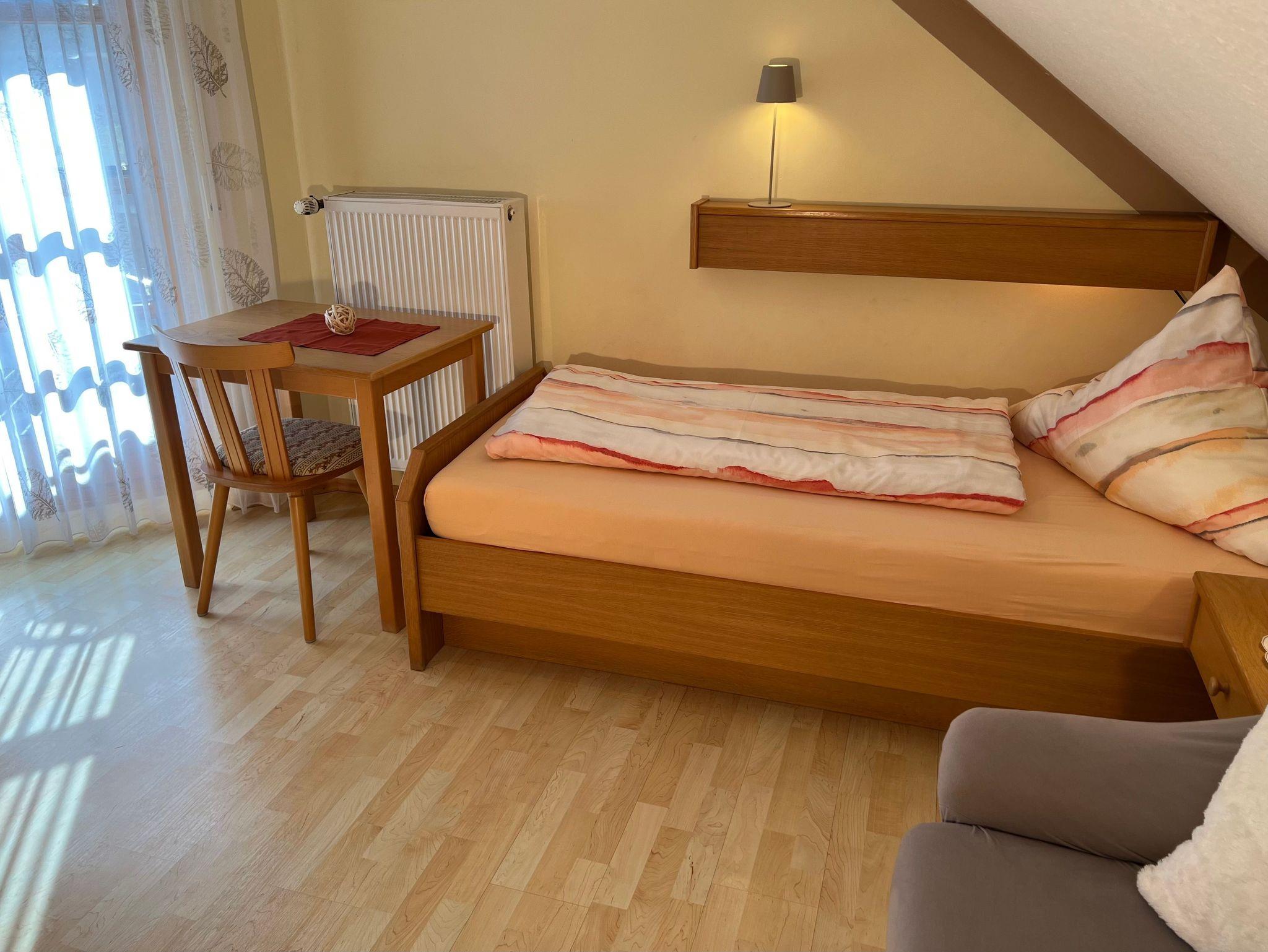 In unserer Ferienwohnung 2 (65 qm) können Sie auf dem gemütlichen Balkon die Abendsonne genießen. Zwei bis sechs Personen haben Platz in einem großen Schlafzimmer mit Doppelbett und Schlafcouch und einem weiteren Schlafzimmer mit zwei Einzelbetten und einem Zustellbett.