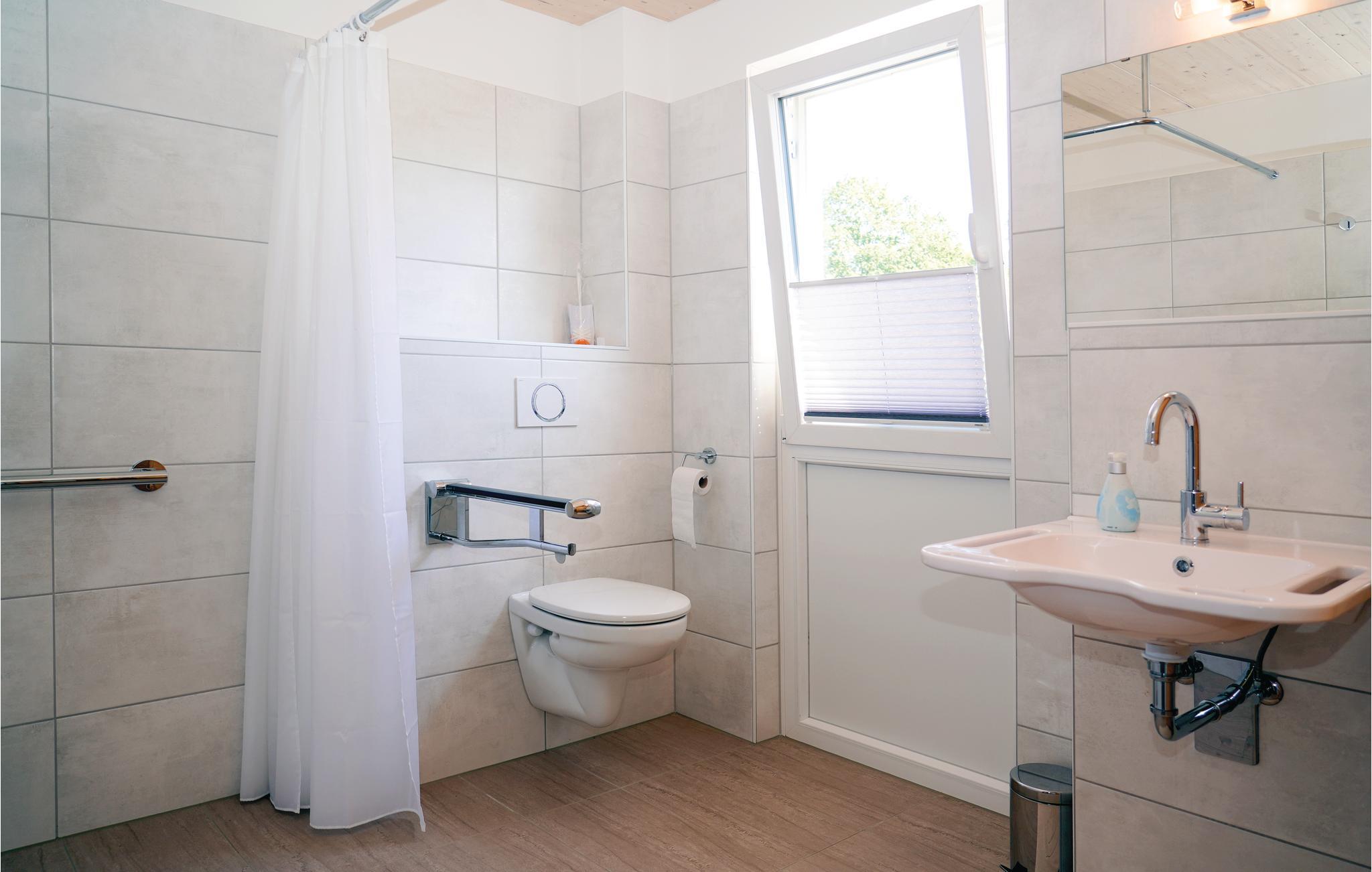 Her har du muligheden for at leje et energioptimeret sommerhus. Her får du moderne design med komfortabelt udstyr af høj kvalitet. Indgangen er let tilgængelig fra parkeringspladsen foran huset. Huset er således velegnet til handicappede. Badeværelse og toilet kan også bruges med rollator eller kørestol. Derudover er der på første sal et soveværelse med to enkeltsenge til rådighed.