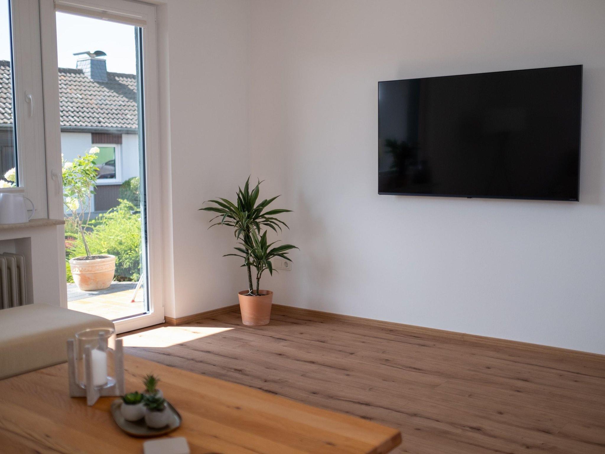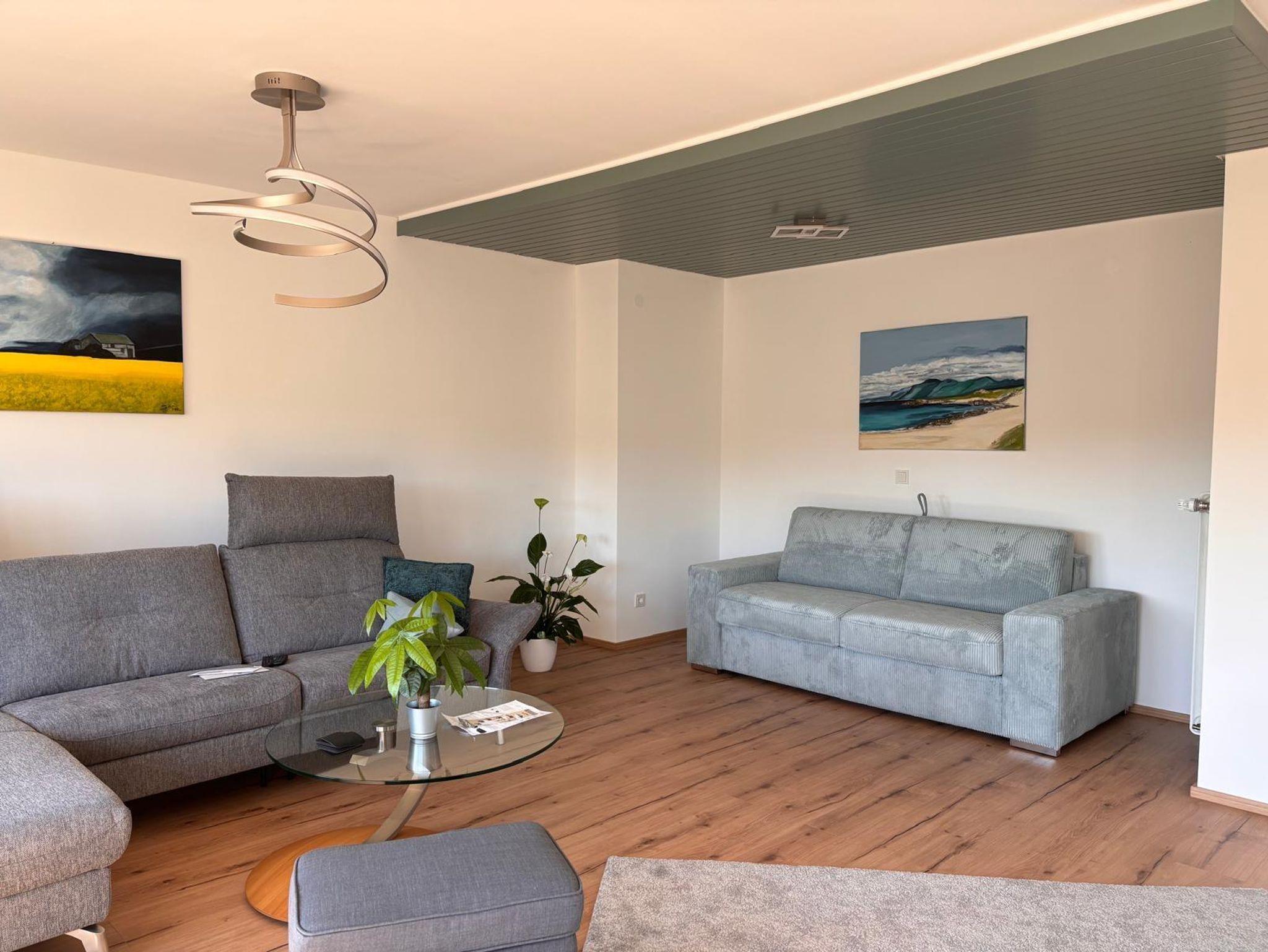 Im Wohnbereich lädt ein 55-Zoll-TV mit Streamingdiensten (Netflix, Disney+, RTL+) sowie Glasfaser-WLAN zum Entspannen ein. Für Familien mit Kleinkindern stellen wir auf Anfrage ein Babybett kostenfrei zur Verfügung. Ein Föhn gehört selbstverständlich ebenfalls zur Ausstattung.