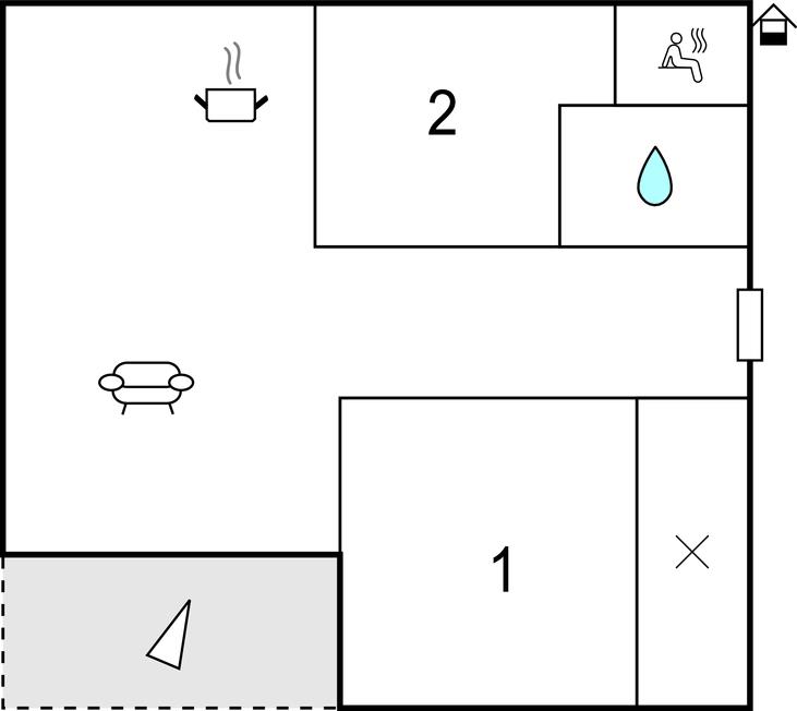 Opholdsstue/køkken - 1 Soveplads. (Sofa, madras eller lignende).