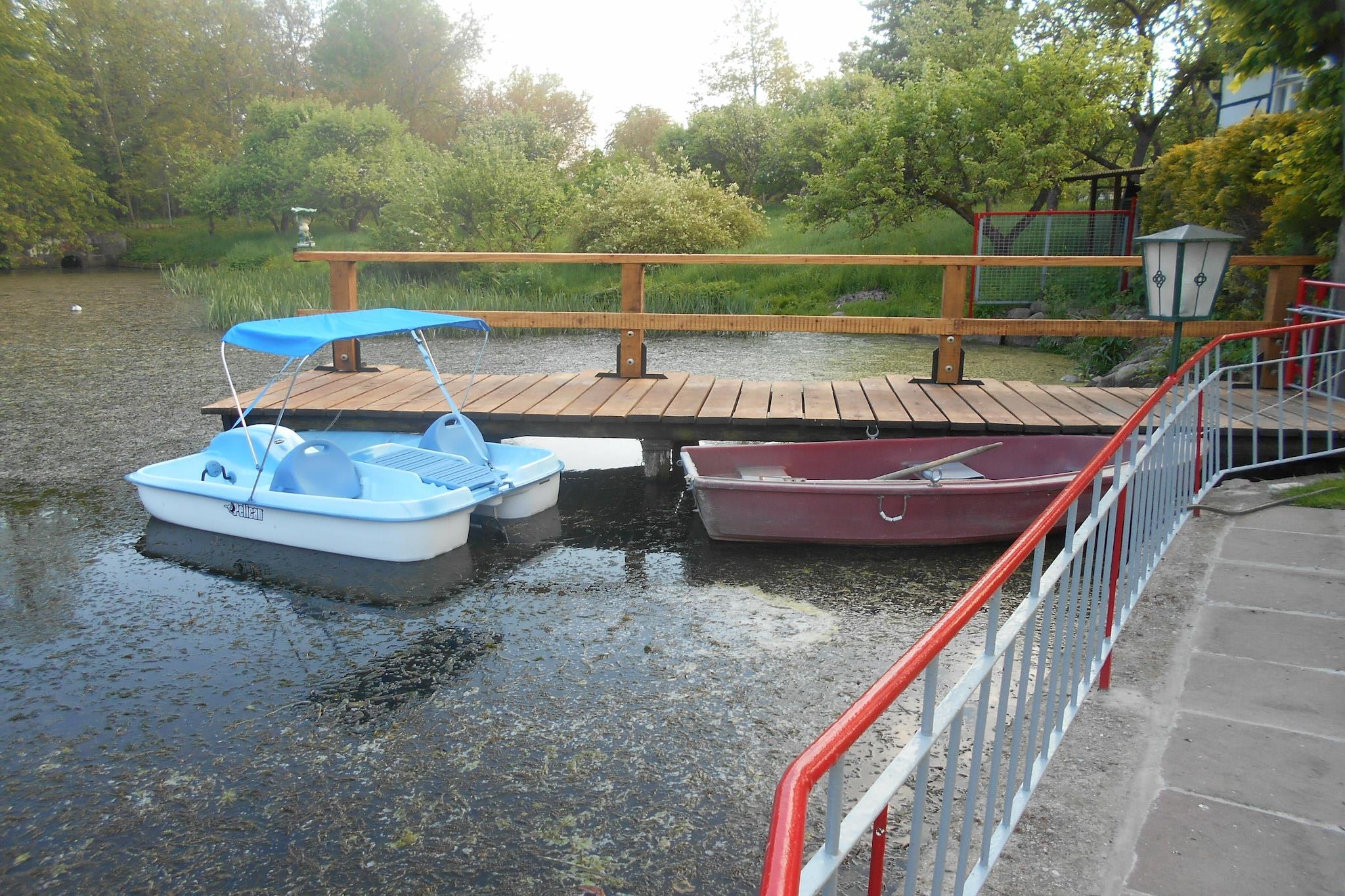 Stueetage: (Stue(enkeltsovesofa), Køkken(spisebord, kogeplade, elkedel, kaffemaskine, combi-mikroovn, køleskab), soveværelse(2x enkeltseng, dobbeltseng, Fjernsyn), badeværelse(bruser)) fortøjningsbro, rejseseng, baggård, have, grill, parkering, dam, legeredskaber, rutsjebane, barnestol, Gyngestativ