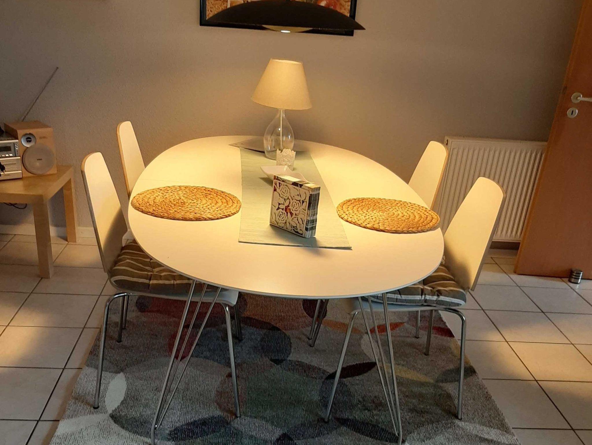 Modern, freundlich und gemütlich eingerichtete Ferienwohnung für 2-4 Personen mit großer komplett ausgestatteter Wohnküche (Geschirrspüler, Backofen, Cerankochfeld, Kühlschrank mit Gefrierfach, Kaffeemaschine), Schlafzimmer mit Doppelbett (1,80 breit), Wohnzimmer mit Aufbettungsmöglichkeit für 1-2 Personen auf Schlafsofa (Liegefläche 1,40 x 2,00),Terrasse und Gartennutzung, ebenerdig, Nichtraucherwohnung