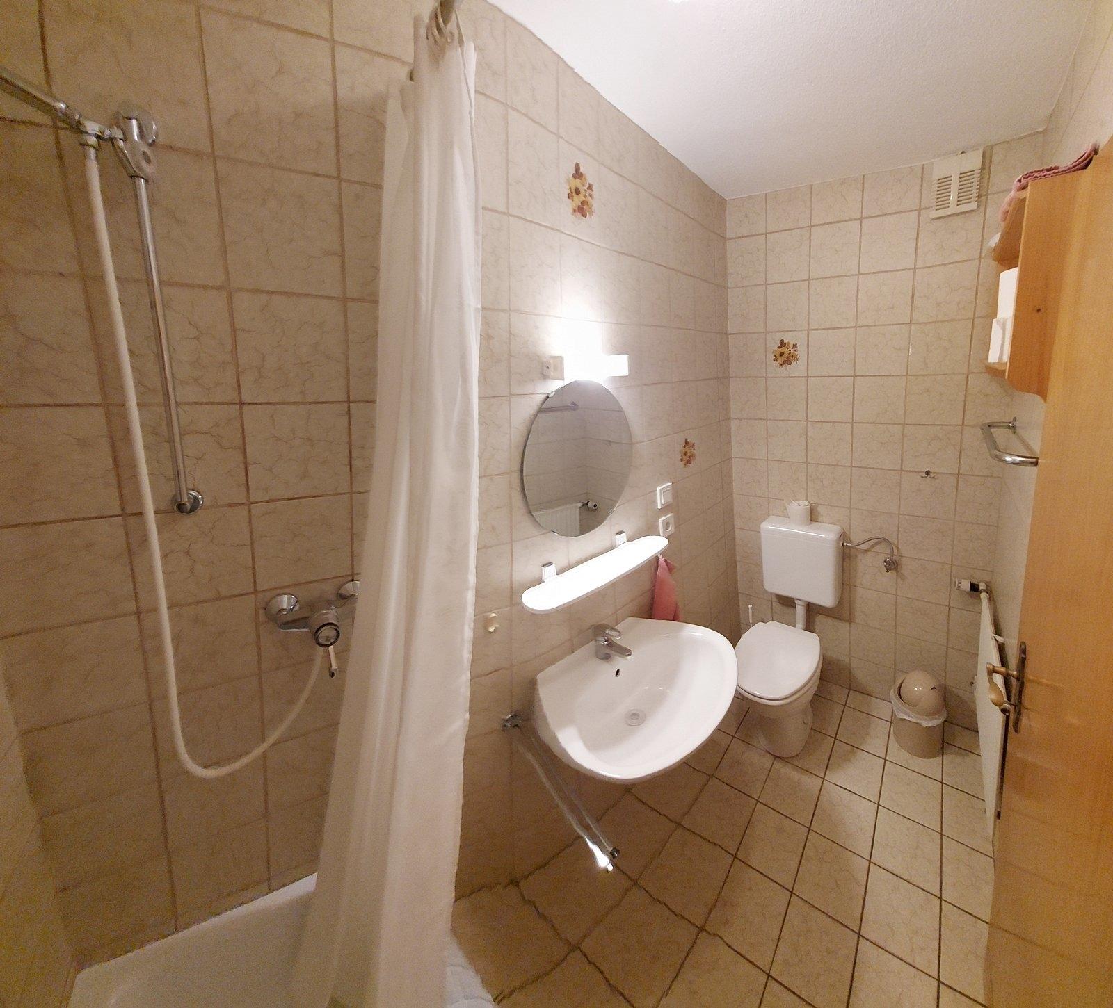 Das schöne Bad verfügt über Dusche, Waschtisch und WC.
