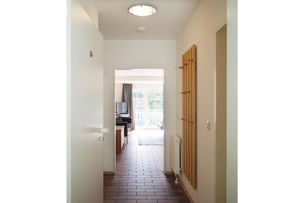 This holiday apartment is located almost directly on the Darßwald forest, in the second row. The approximately 40 square meter apartment has a large, enclosed bathroom with a bathtub. On the spacious south-facing balcony, you can enjoy breakfast or end the day with a glass of wine. The living room and bedroom are modernly furnished, and the small kitchenette offers everything you need. The apartment includes a parking space. Pets are welcome for a fee. Smoking is not permitted. You can store your bikes in the bicycle shed, which is available to all guests. There is a coin-operated washing machine in the utility room.