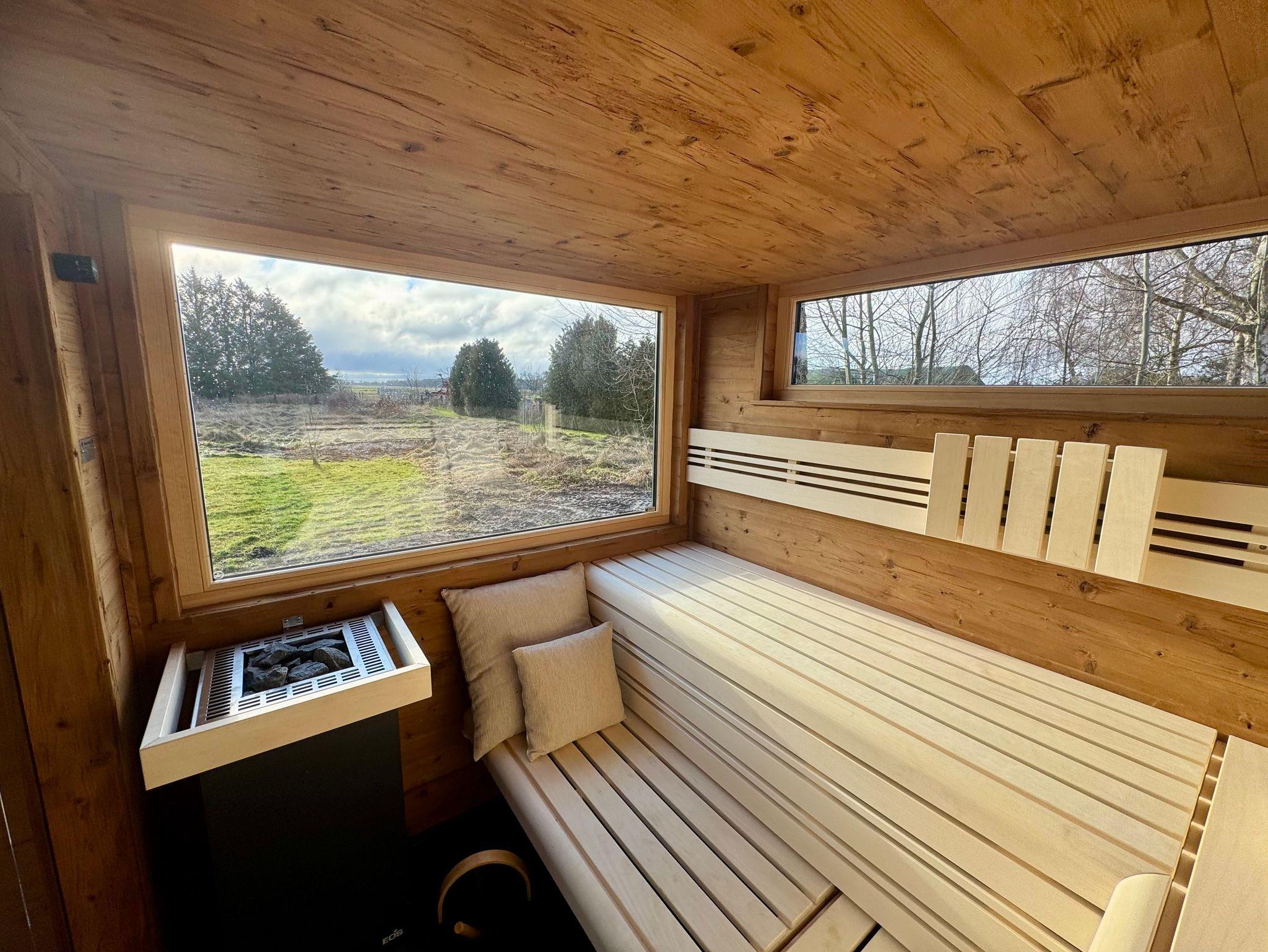 Wunderschöne Außensauna mit Panoramablick jetzt buchbar! Kosten: 2,50 pro Tag | Endreinigung einmalig 50,00