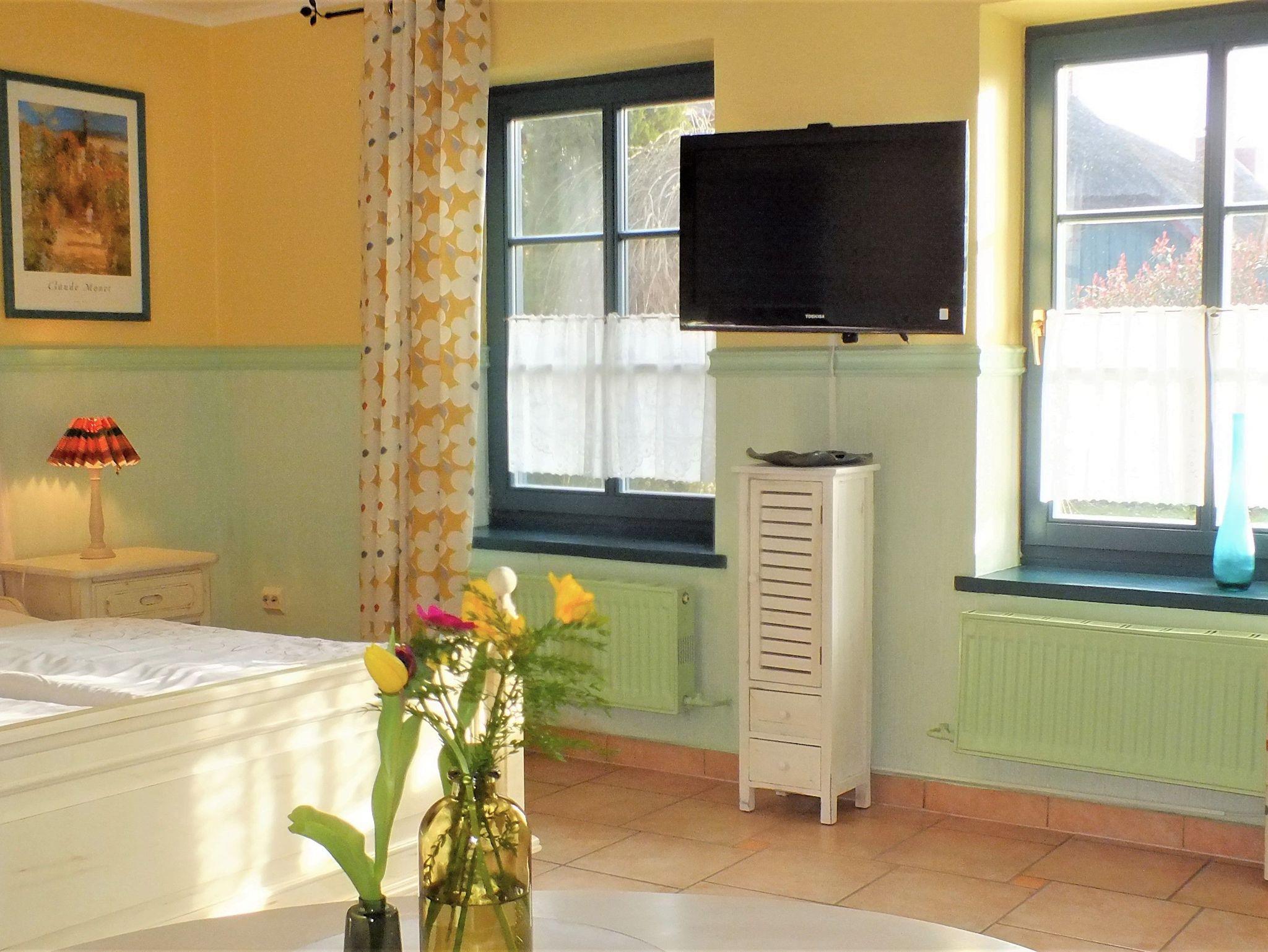 Das Klönhus liegt ruhig und idyllisch im historischen Ortskern in der Nähe (2 Minuten fußläufig) des Boddenhafens. Es ist ein privat geführtes, aufwendig restauriertes ehemaliges Kapitänshaus mit zwei Parterre liegenden Ferienwohnungen und einem kleinen Apartment, in denen wir das Innenfachwerk mit frei stehenden Balken, teilweise Lehmwänden und Backstein für ein klimatisch gesundes Wohnen erhalten haben. Das Ambiente ist mit vielen schönen Details im Landhausstil gehalten.