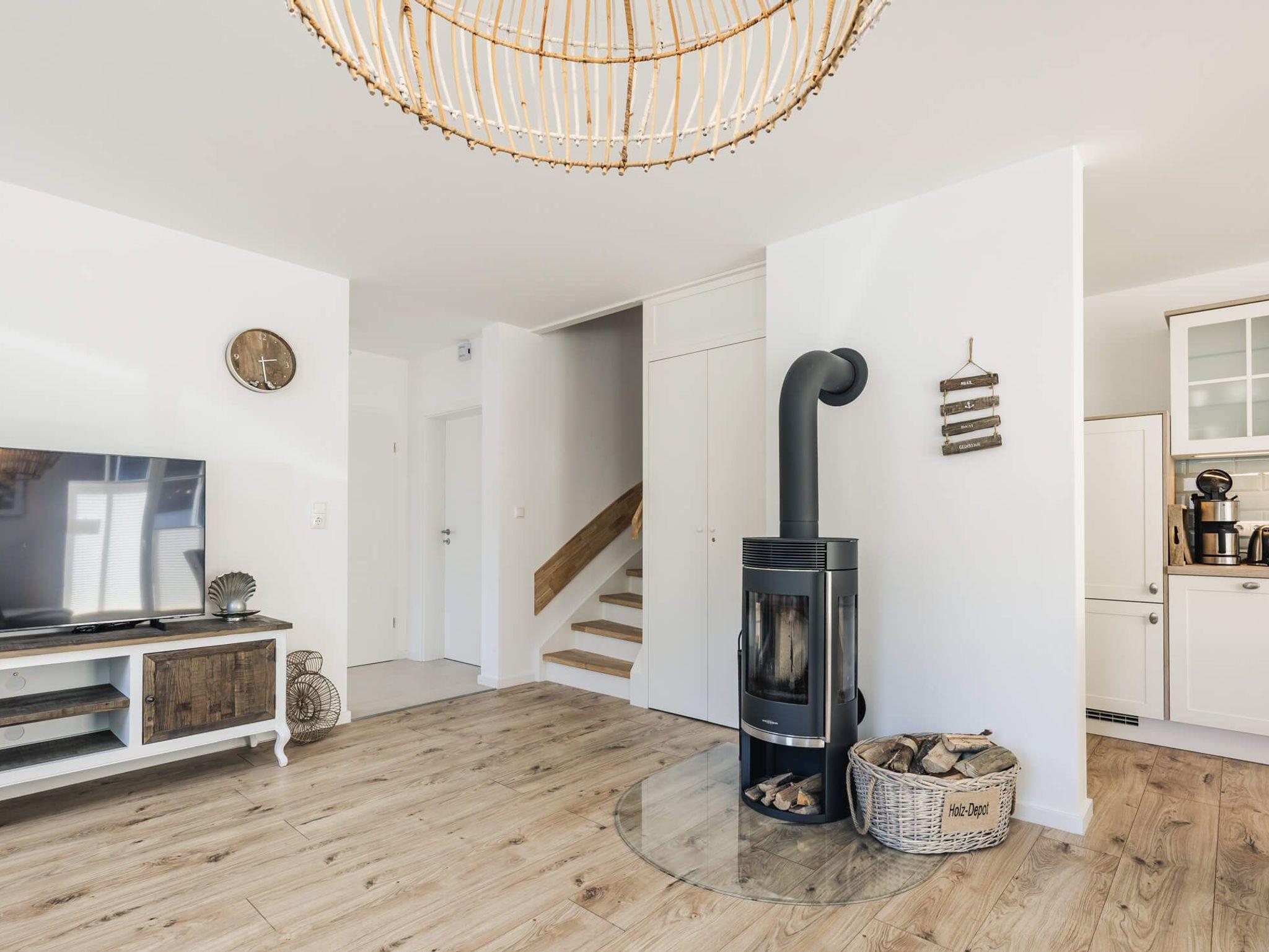 • Gemütlich & modern: Wohnzimmer mit Kamin, voll ausgestattete Küche, drei Schlafzimmer u.a. mit bequemen Boxspringbetten, zwei Badezimmer, davon ein Bad mit Sauna, zwei Parkplätze