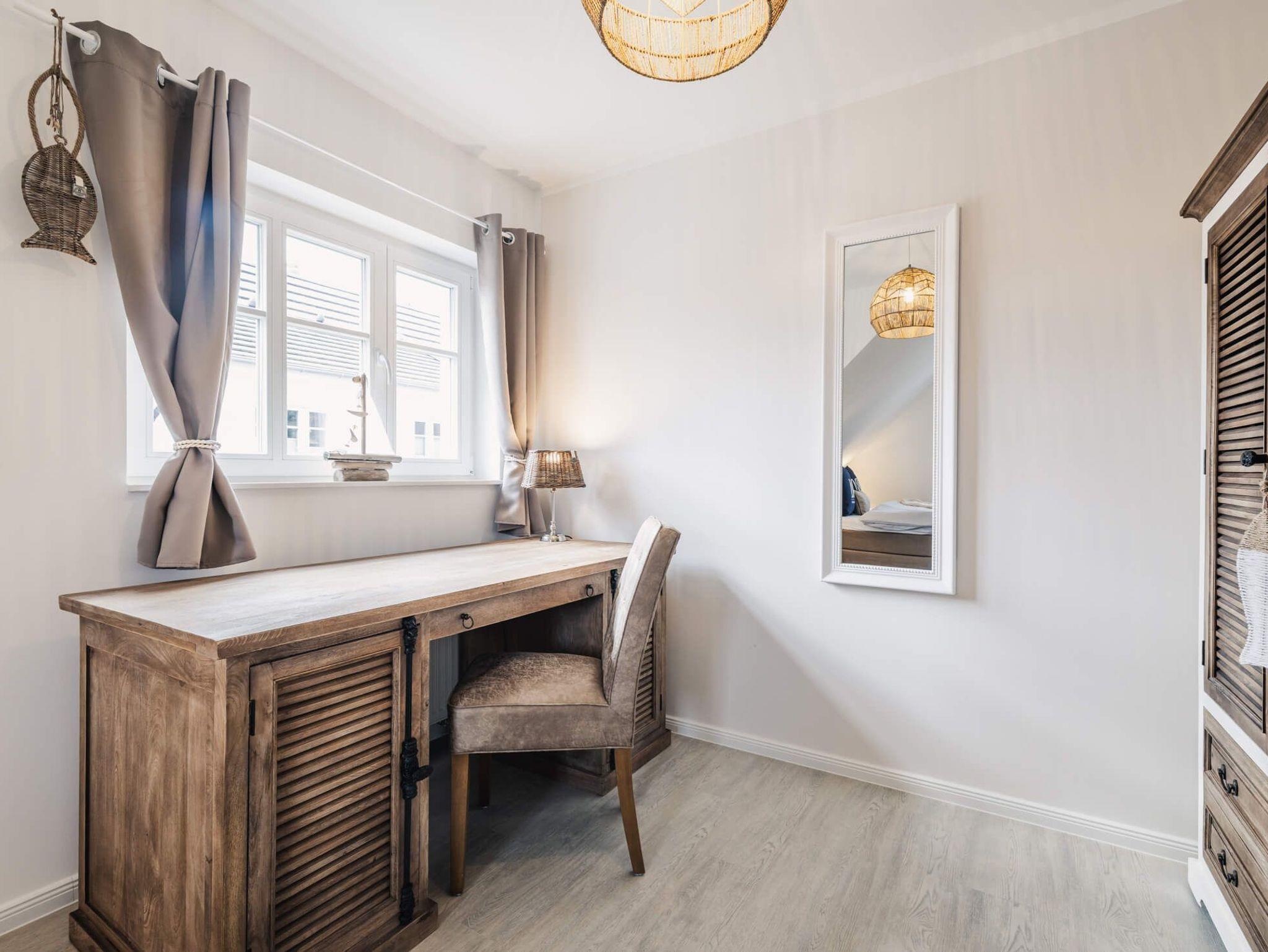 Das Haus Meerweh besticht durch seine gemütliche Atmosphäre und die hochwertige Ausstattung. Zwei der drei Schlafzimmer sind mit komfortablen Boxspringbetten ausgestattet, die für erholsame Nächte sorgen. Die voll ausgestattete Küche und der großzügige Wohn- und Essbereich laden zum Verweilen ein. Ein Kaminofen sorgt für wohlige Wärme an kühlen Tagen, und die hauseigene Sauna verspricht Entspannung pur.