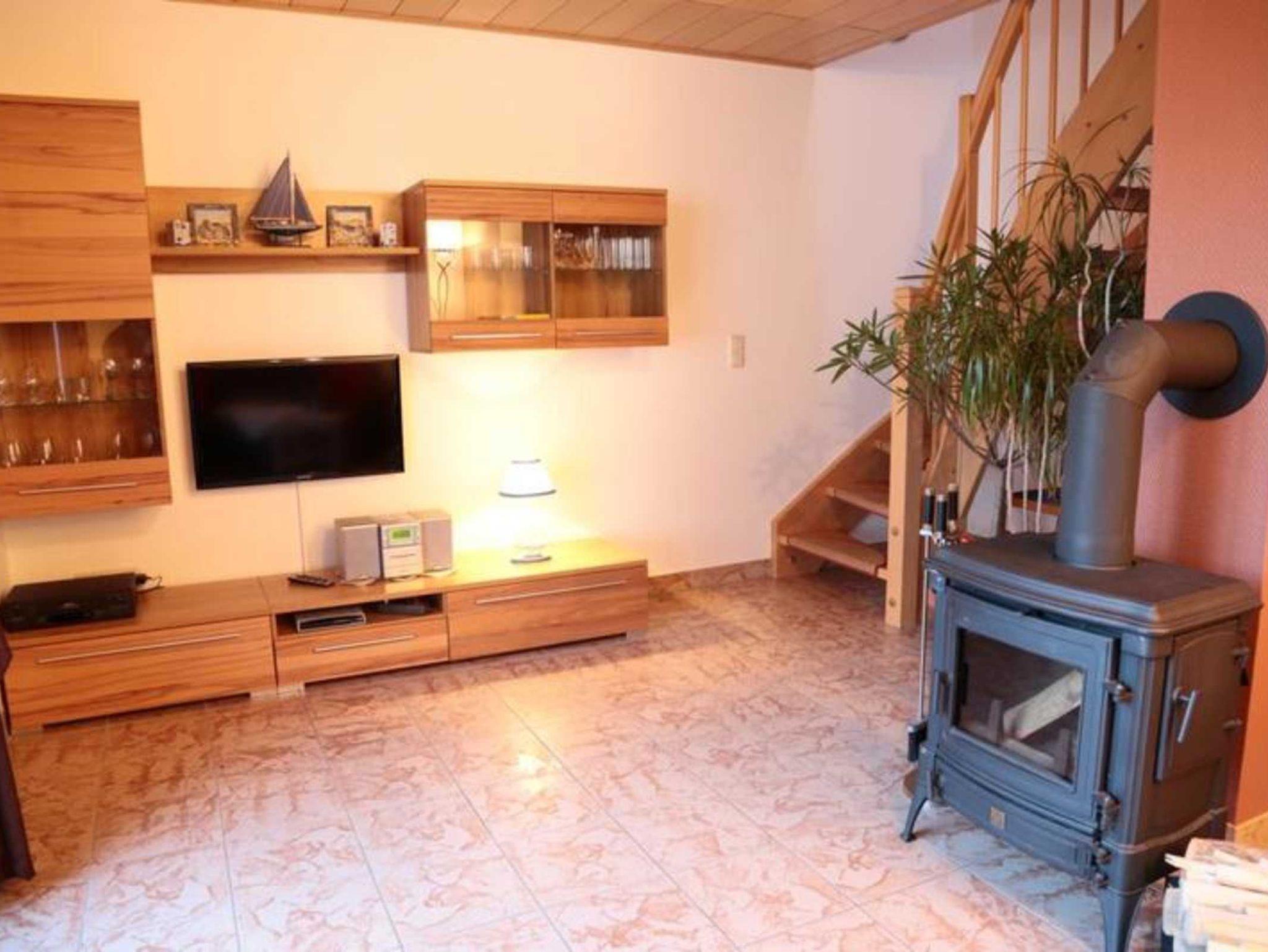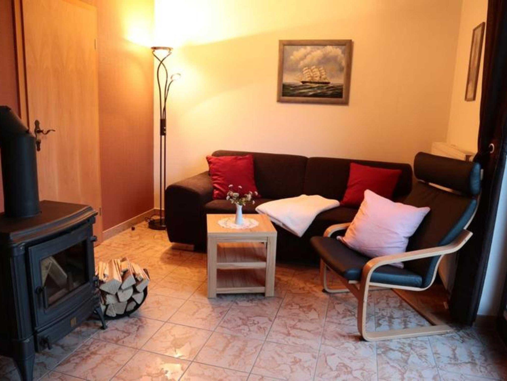 Wohnzimmer: 20 m², Kaminofen, SAT-TV, Stereoanlage, gemütliche Couch mit Sessel, kleine Schrankwand, Kinderhochstuhl, kostenfreies WLAN