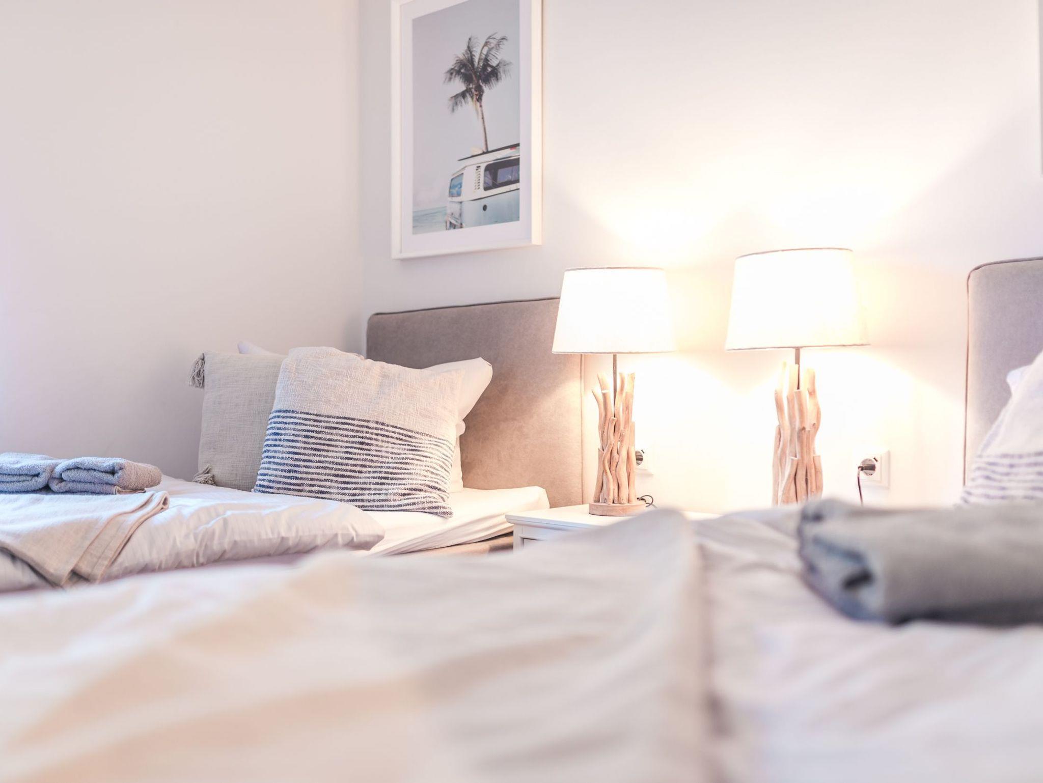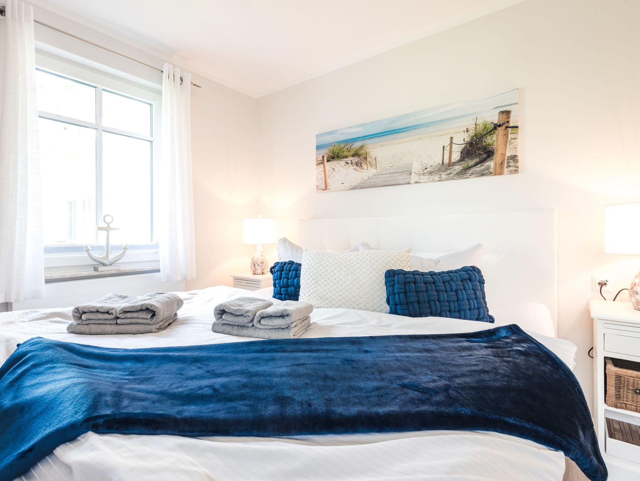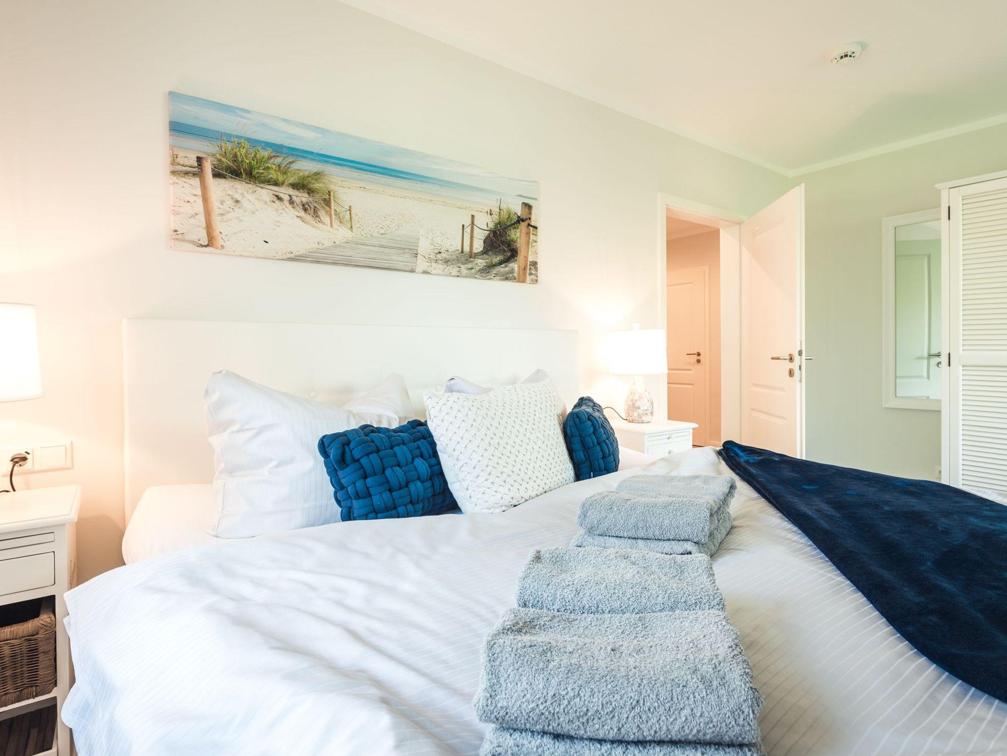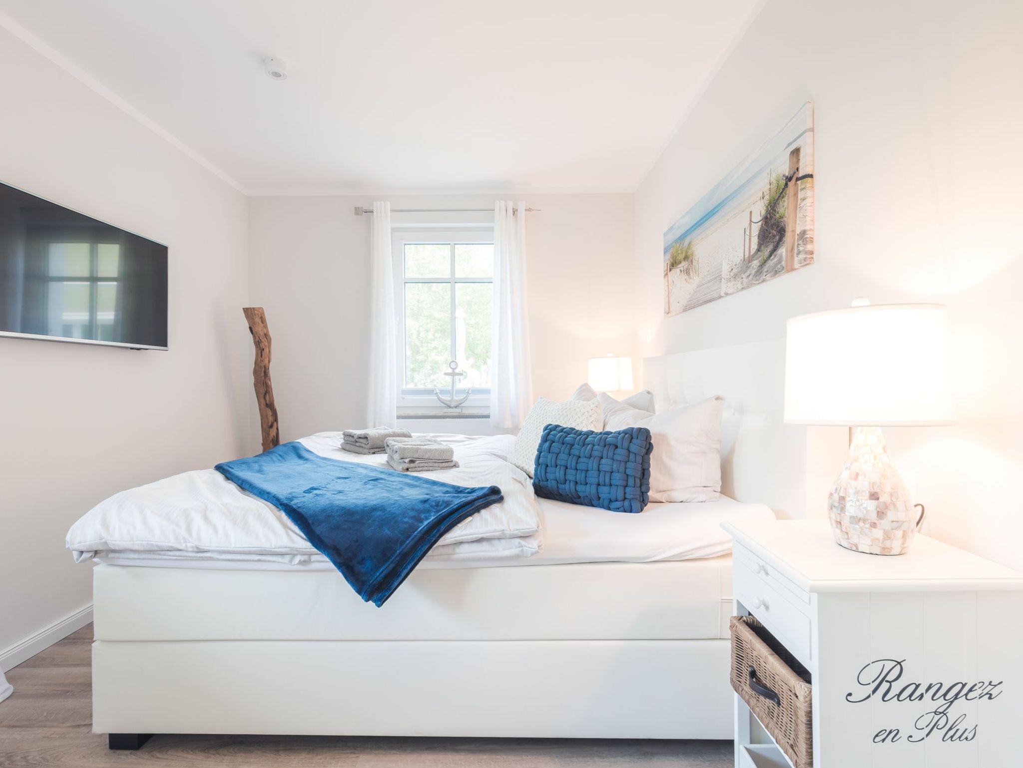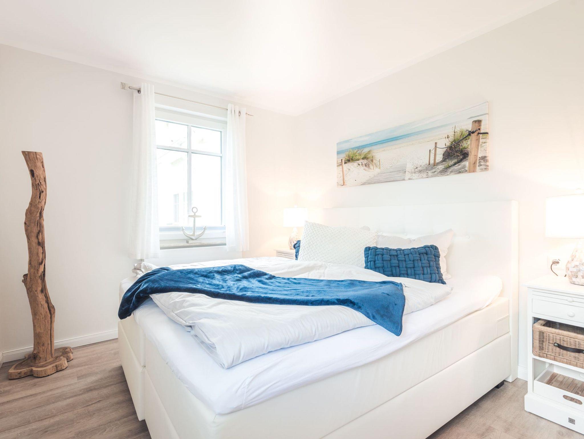 Insgesamt verfügt die Ferienwohnung über zwei separate Schlafzimmer. Eines davon ist mit einem sehr komfortablen Boxspring-Doppelbett ausgestattet.