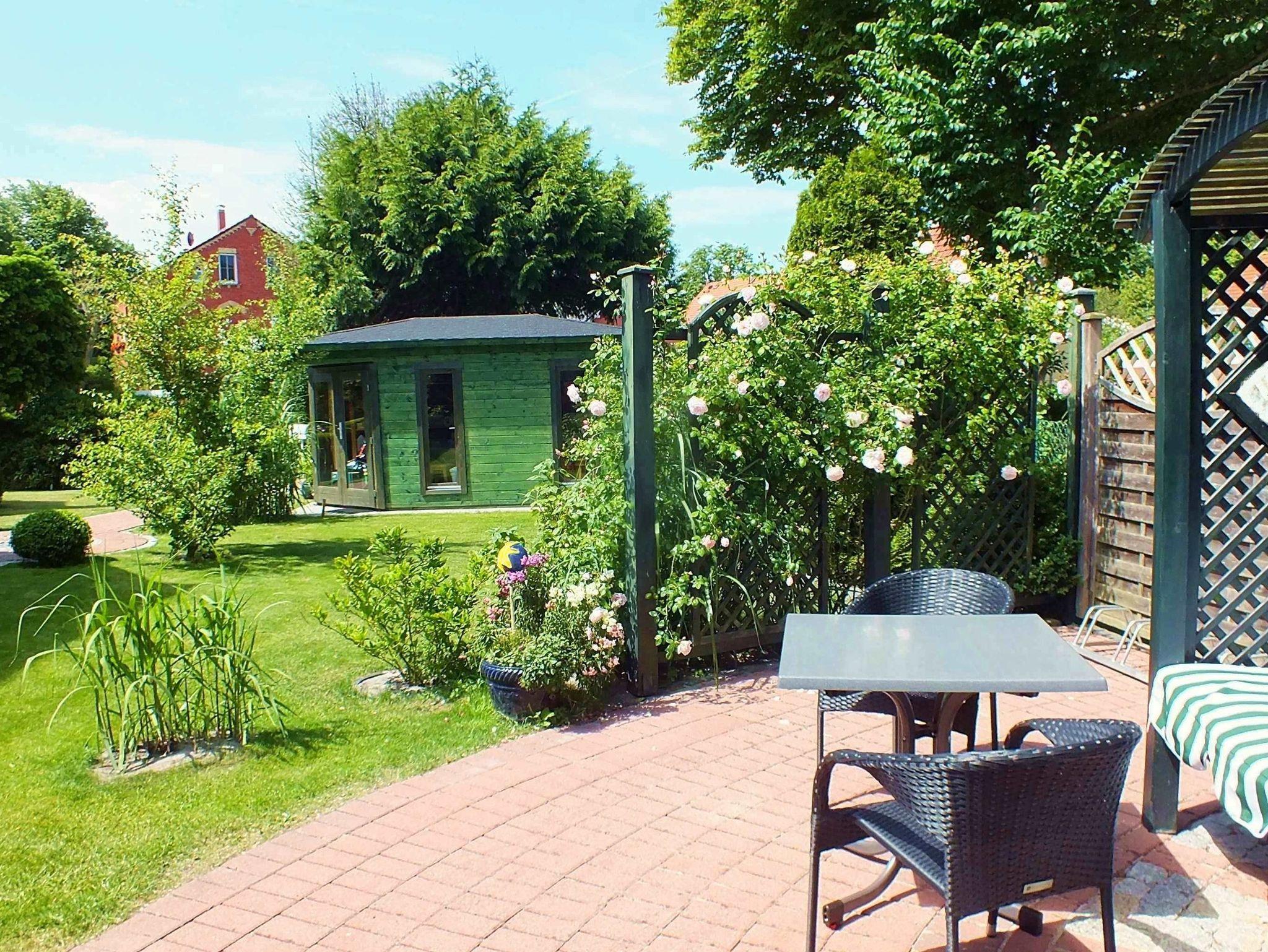 Von Ihrer Frühstücks-Terrasse direkt am Haus, dem ungestörten Gartenbereich, der Liegewiese - und an Wind und Wettertagen aus dem zugehörigen Pavillon - blicken Sie in unseren schön eingewachsenen, ruhigen Garten.