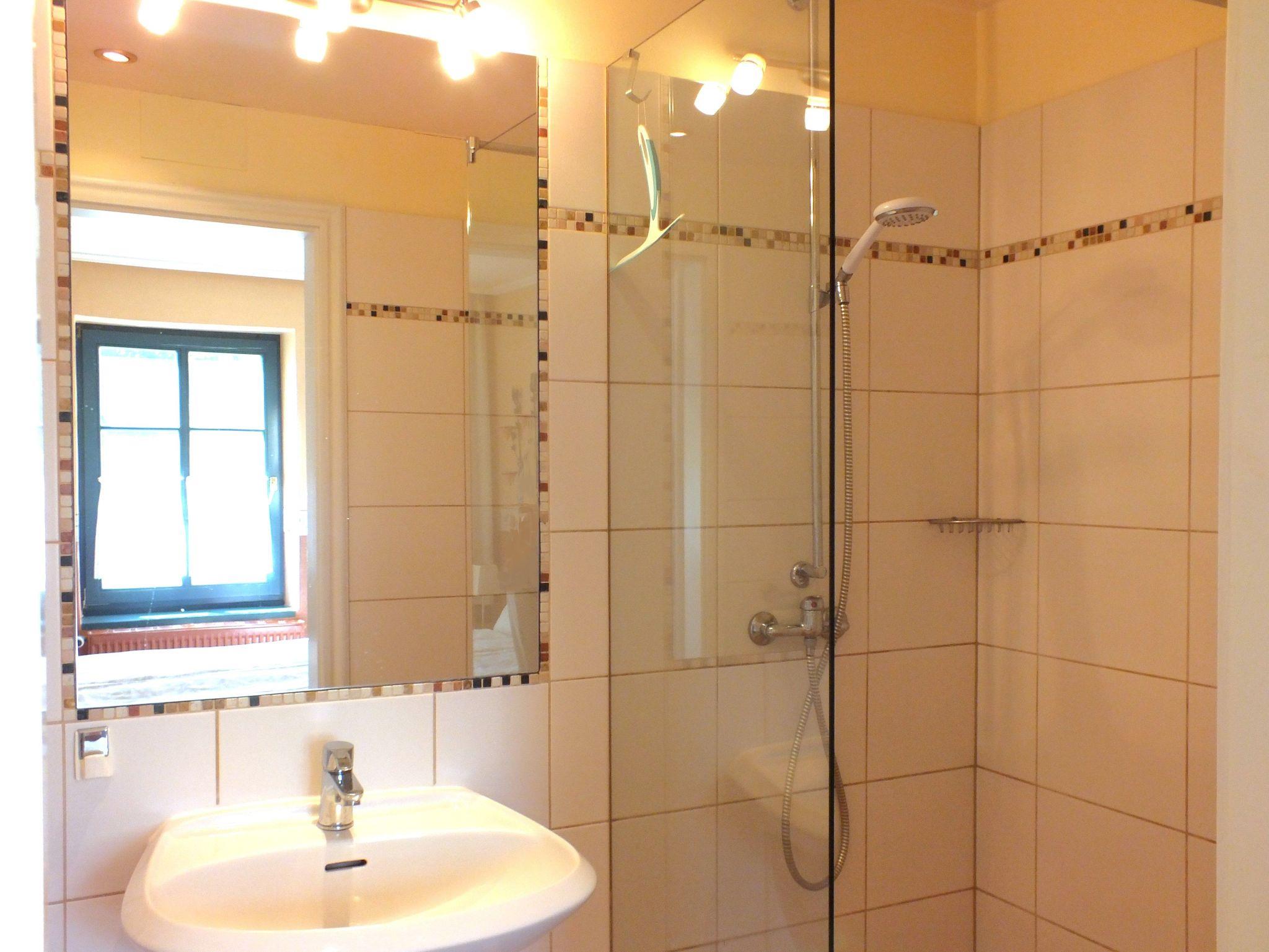 Unser Apartment, in dem Sie von der Morgensonne geweckt werden, beinhaltet alles für einen kochfreien Urlaub für ein bis zwei Gäste: ein schönes gefliestes Duschbad, WC und eine im Schrank integrierte kleine Teeküche mit Kühlschrank, Mini-Gefrierfach - Spüle - Geschirr - Kaffeemaschine ? Toaster ? Wasserkocher ? Spülmittel, optimal für eine Frühstückszubereitung. Desweiteren TV, Highboard, CD-Player, Bistrotisch mit Sesseln.
