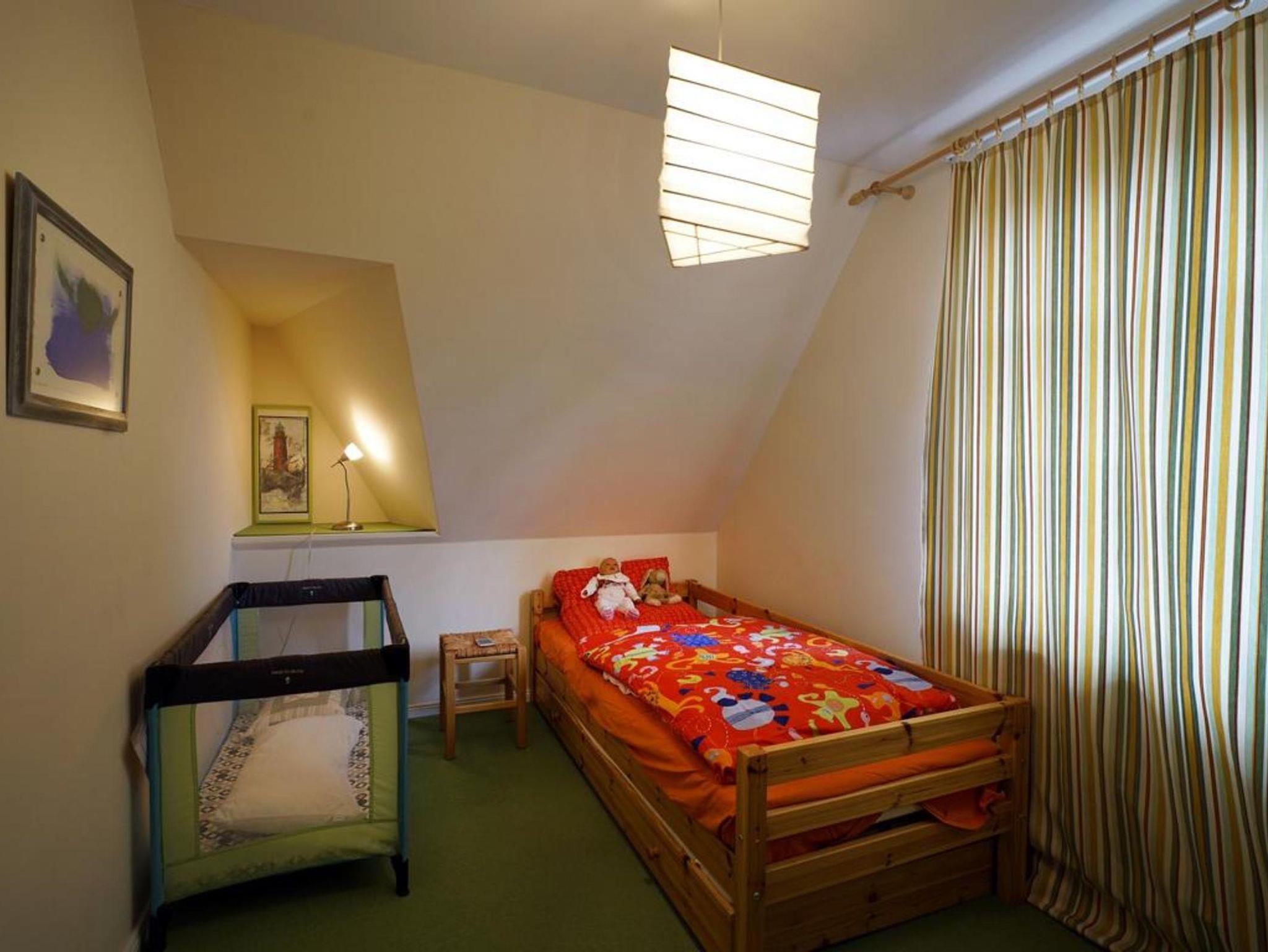 *ein Schlafzimmer mit Doppelbett und Platz für ein Reisebett