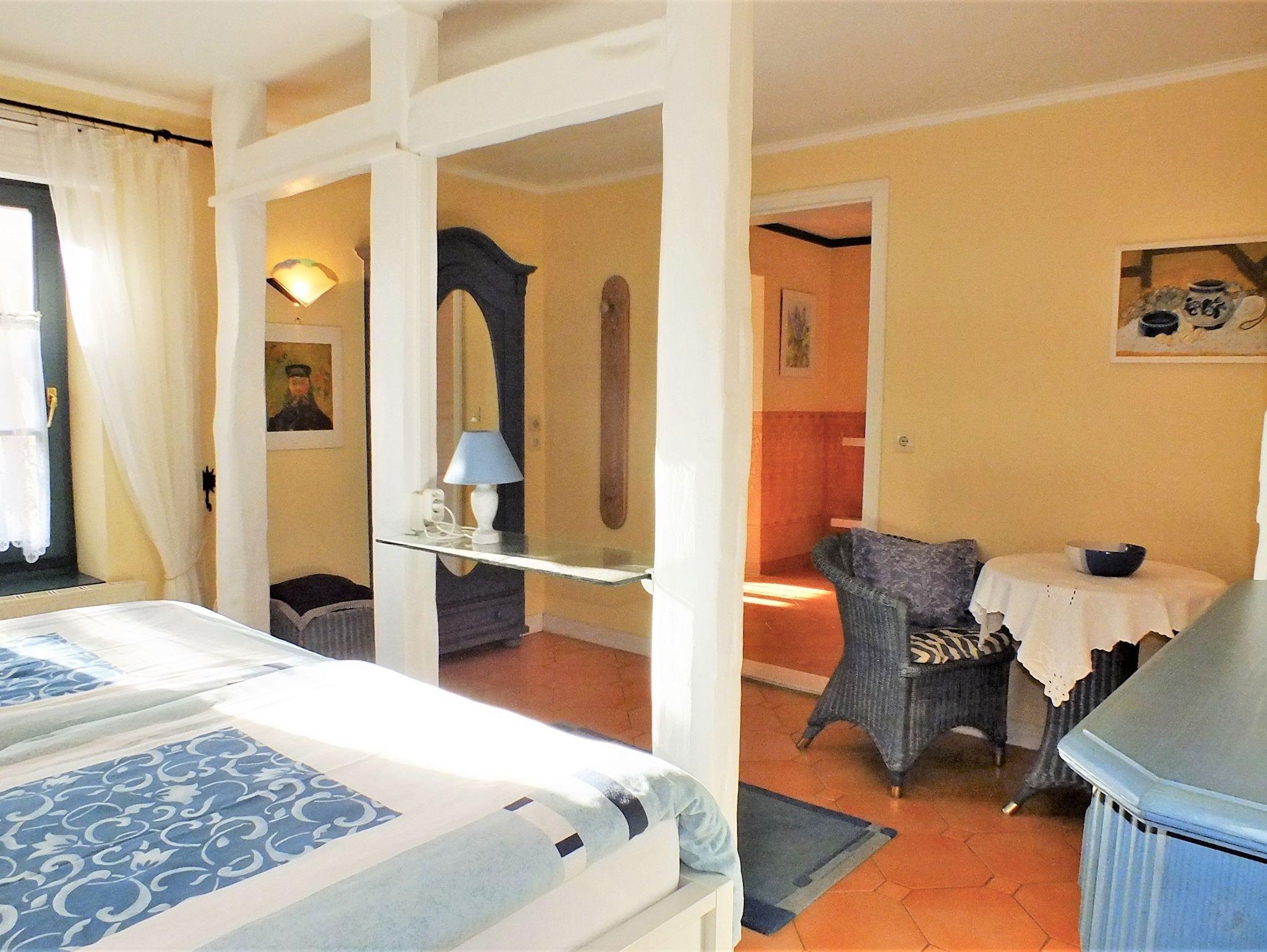 Das Klönhus liegt ruhig und idyllisch im historischen Ortskern in der Nähe (2 Minuten fußläufig) des Boddenhafens. Es ist ein privat geführtes, aufwendig restauriertes ehemaliges Kapitänshaus mit zwei Parterre liegenden Ferienwohnungen und einem kleinen Apartment, in denen wir das Innenfachwerk mit frei stehenden Balken, teilweise Lehmwänden und Backstein für ein klimatisch gesundes Wohnen erhalten haben. Das Ambiente ist mit vielen schönen Details im Landhausstil gehalten.