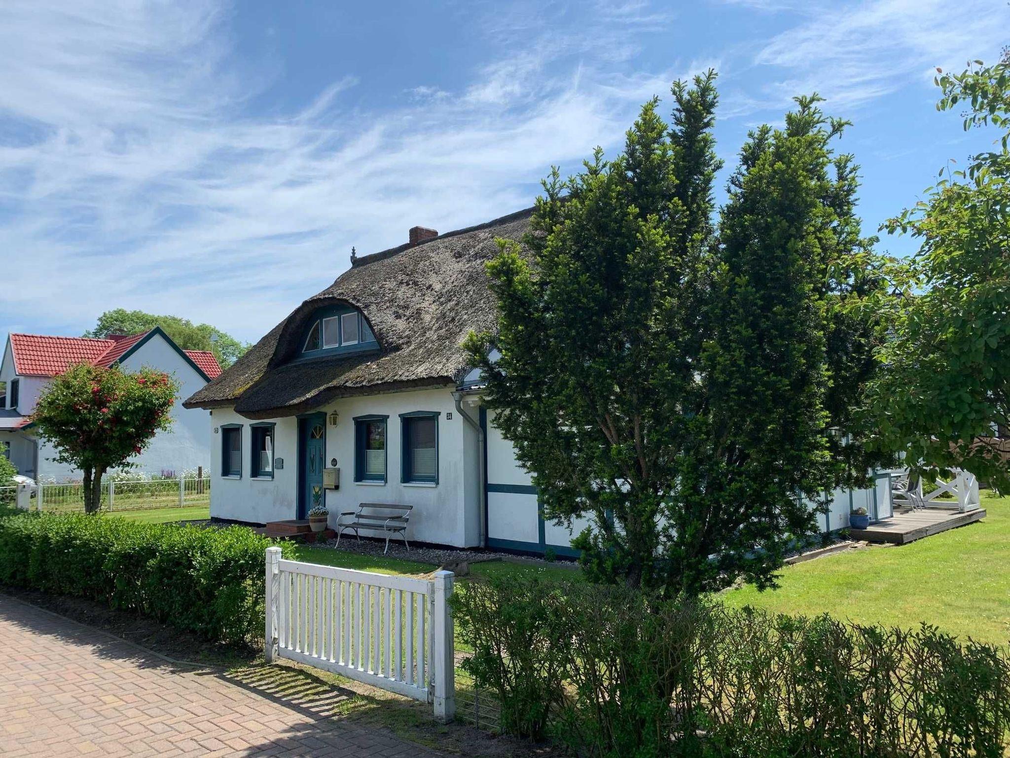 Wir bieten Ihnen ein freistehendes, gut ausgestattetes Ferienhaus (Ober- und Untergeschoss), Terrasse und großem Garten in ruhiger und doch zentraler Lage. Sie können das ganze Haus für bis zu 8 Personen mieten. In der grossen Darssveranda (Wintergarten) erleben Sie in grosser Runde gemeinsame Stunden. Das reetgedeckte Ferienhaus wurde liebevoll restauriert und empfängt die Besucher mit der Atmosphäre eines ortstypischen Fischerhauses, ohne auf modernen Komfort zu verzichten. Verbringen Sie Ihren Urlaub gern in großer Runde? Das Haus Gabi 1 bietet ideale Voraussetzungen für den Urlaub mit 3 Generationen, mehreren Paaren oder im Freundeskreis. Die zwei Wohnungen (Ober/ Untergeschoss) sind durch eine Tür im Treppenhaus voneinander getrennt.