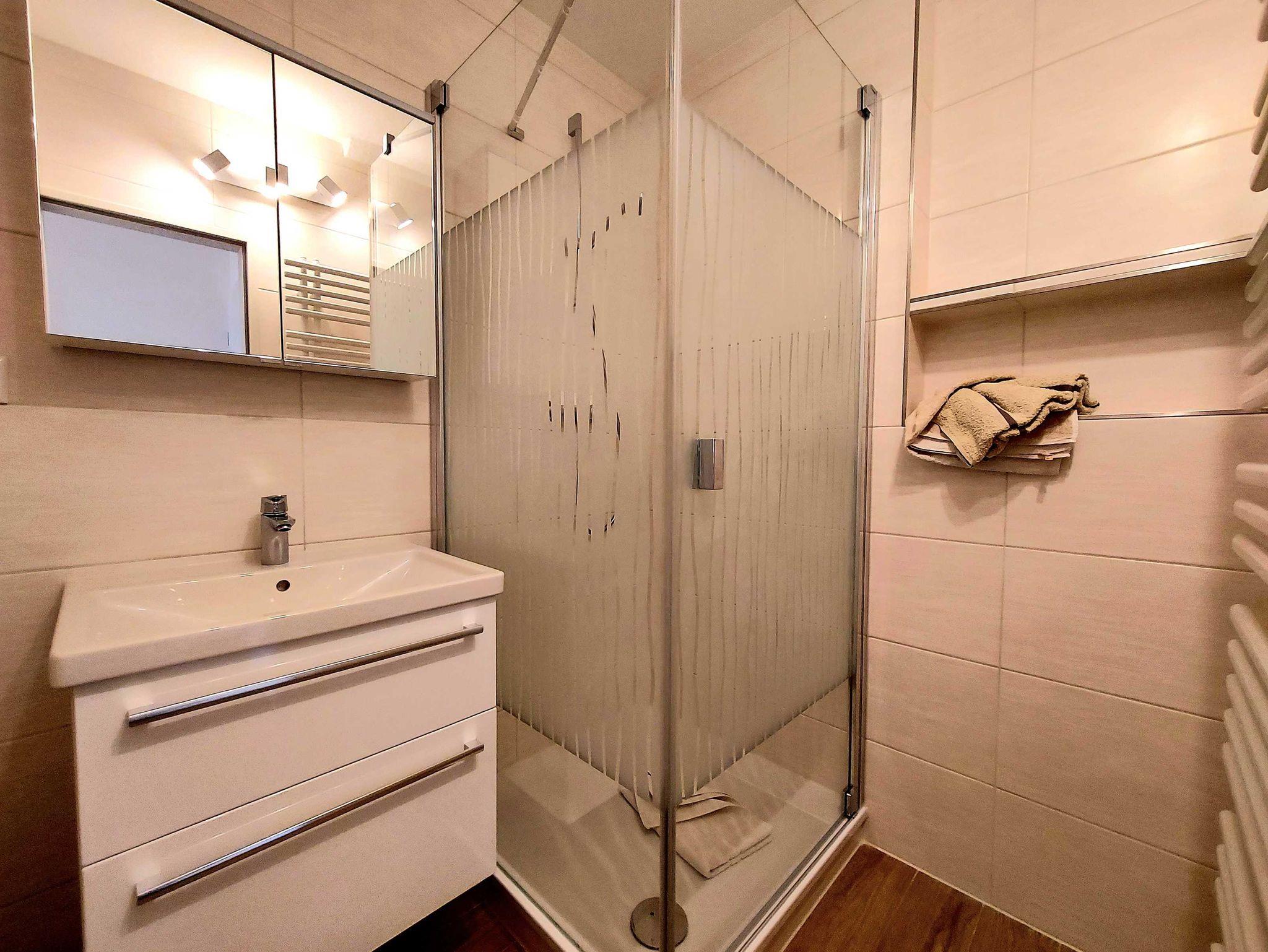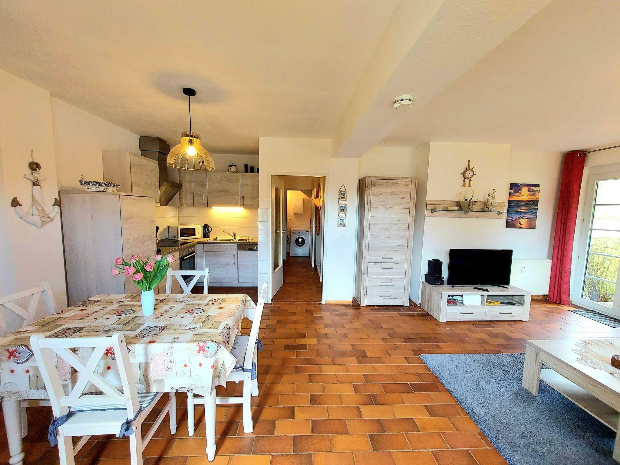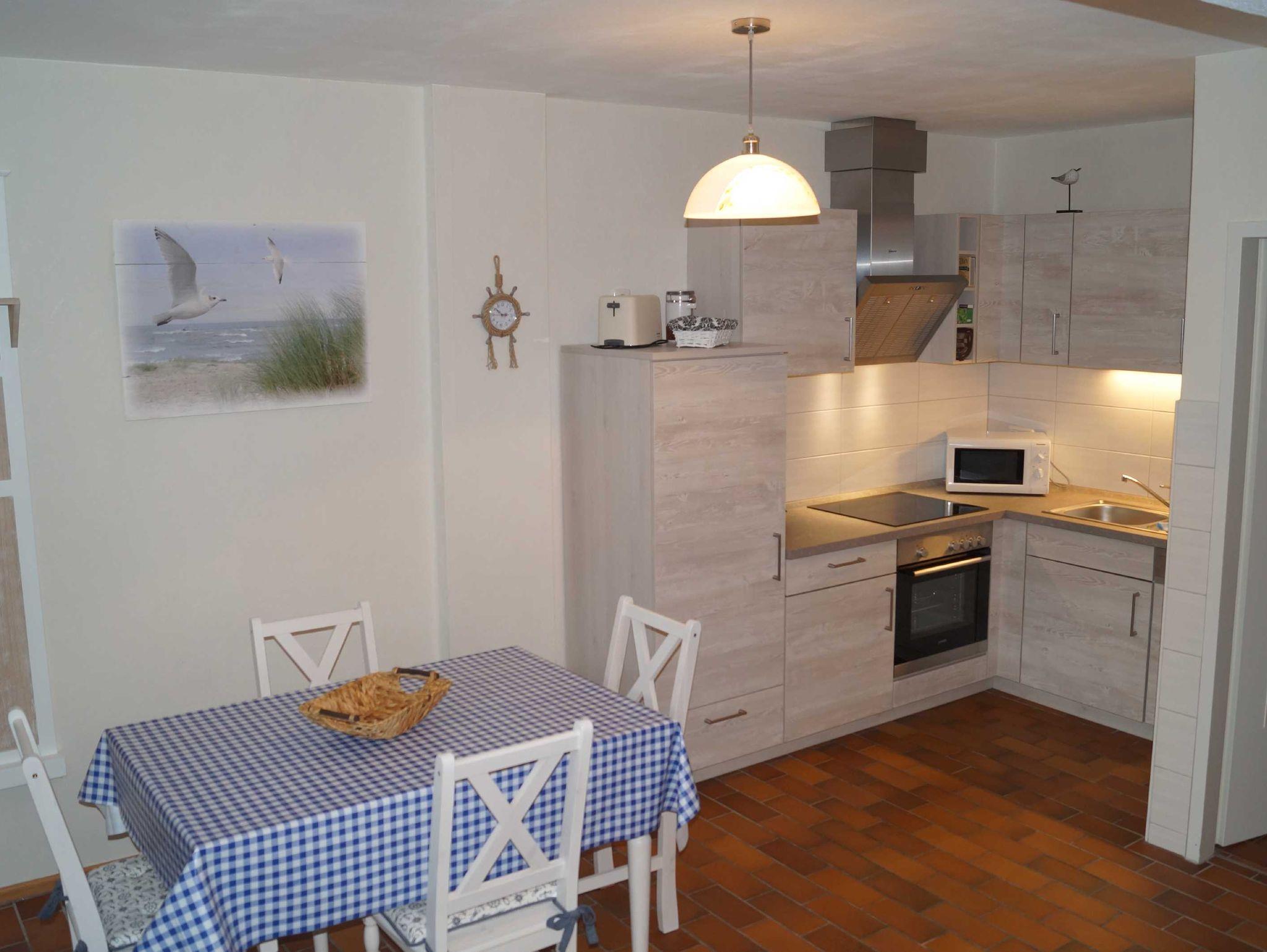 Gemütliche und komfortable Ferienwohnung im EG in grüner Lage. Mit Terrasse,Parkplatz und sep. eigenem Fahrradabstellraum. Nah am Darßer Wald und ca. 1,5 km vom Nordstrand und 1,5 km vom Ortszentrum entfernt. Beschreibung 1 Wohnzimmer mit Einbauküche und Schlafcouch für 2 Pers. Liegefläche 142 cm 1 Schlafzimmer mit Doppelbett 160 x 200 cm 1 Bad Dusche/WC, 1 Abstellkammer 1 kostenloser PKW-Stellplatz 1 sep. Fahrradabstellraum Weitere Informationen,Ausstattung Verpflegung Selbstverpflegung Allgemein 1 Haustiere erlaubt, Nichtraucherobjekt, Seniorengeeignet Ausstattung Waschmaschine Schlafzimmer: Doppelbett,1 Babyreisebett mit Matratze Wohnraum: 1 Fernseher, Sat-TV, Stereoanlage, Spiele, Bücher,1 Babyhochstuhl ,Schlafcouch für 2 Personen Küche: Herd(Ceranfeld) mit Backofen, Abzugshaube, Kühlschrank mit Gefrierfach, Kaffeemaschine, Mikrowelle, Spülmaschine, Toaster,Wasserkocher, Geschirr für 4 Personen,Tisch mit 4 Stühlen Bad: Dusche, WC Zentralheizung Außenbereich Terrasse mit Gartenmöbel, Parkplatz, Spielplatz, zentraler Grillplatz kostenloses WLAN