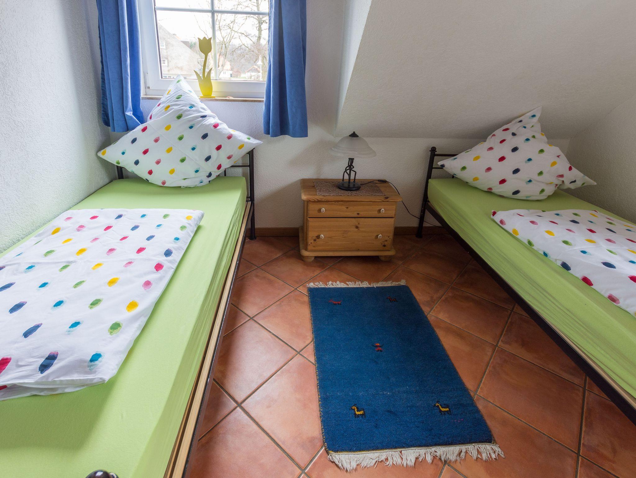 Es handelt sich um eine kleine Wohnanlage mit insgesamt 5 Wohnungen.Wohn- Esszimmer mit Küchenanteil, 2 getrennte Schlafzimmer mit einem Doppel- und 2 bezw 3 Einzelbetten. Zur Ausstattung gehören Geschirrspüler, Mikrowelle, Herd mit Ceranfeld und Backofen, Wlan Anschluss, Waschmaschine,Trockner,Fernseher, Hifi-Anlage, Kinderreisebett und Hochstuhl.Bettwäsche und Handtücher sind mitzubringen. Im Endpreis sind Energiekosten bereits enthalten. Optional fällt ggf. eine Endreinigungsgebühr von 60€ an.Falls Sie Haustiere dabei haben, fallen 10 € zusätzlich zur Endreinigungsgebühr an. Die Wohnung wurde 2019 grundlegend renoviert. Ein Wäschepaket kann für 20€ pro Person geordert werden.