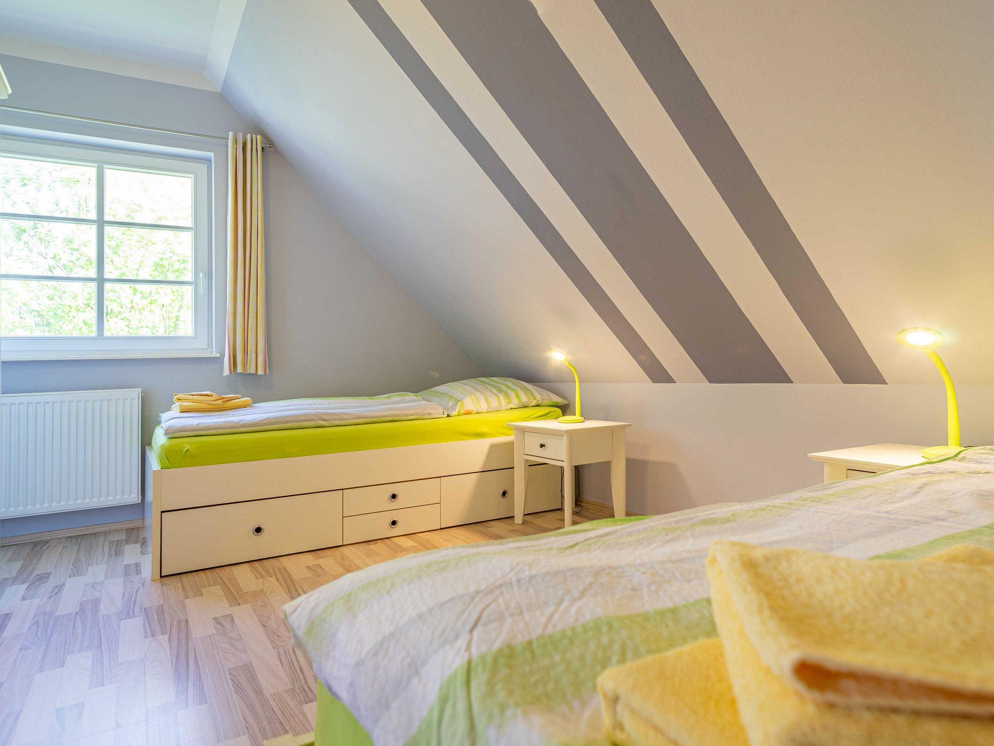 Im Erdgeschoß befindet sich ein 30 qm großer, sonnendurchfluteter Wohnbereich mit integrierter Küche und Essecke. Komfortable Küchenausstattung, bestehend aus: Ceran-Herd mit Backofen- Geschirrspüler- Kaminhaube- Kühlschrank (150 l Kühlraum)- Gefrierfach (44 l)- Geschirrspüler, ein 300° Panoramakamin, eine komplette Mediaeinrichtung bestehend aus: - LCD TV ? SAT Anlage - Stereoanlage - DVD?Player - Telefonflatrate, kostenloser Internetzugang (WLAN), ein Sanitärraum mit Duschkabine und WC, eine Sauna mit Farblichtgerät, ein Hauswirtschaftraum mit Waschmaschine und Trockner, eine 30 qm große Terrasse mit Gartenmöbeln und Strandkorb, Zugang vom Wohnbereich aus , Gartenhaus, Im Obergeschoß, erreichbar über eine Innentreppe, befinden sich: ein 15 qm großes Schlafzimmer mit Doppelbett, ein 14 qm großes Schlafzimmer mit Doppelbett, ein 13,5 qm großes Schlafzimmer mit 2 Einzelbetten, ein Sanitärraum mit Duschkabine und WC und Badewanne, Entfernungen: Strand: 2200 m, Einkaufsmöglichkeit: 1300 m, Bäcker: 1000 m, Post: 1300 m, Sparkasse: 1000 m, Fahrradverleih: 270 m, Gaststätte:270 , Arzt: 1500 m, Apotheke: 1550 m, Schwimmmöglichkeit 1600 m, Spaßbad 38 km, Barth: 19 km, Ribnitz: 38 km, Rostock: 62 km, Stralsund: 52 km. Ein Kinderreisebett und ein Hochstuhl sind vorhanden. Eine Grundausstattung Handtücher sowie die Bettwäsche sind im Preis enthalten. Hinweis: Es wird nicht für die einwandfreie Funktion des Gerätes sowie die Leistung des Providers gehaftet. Schadensersatzansprüche wegen fehlender Verbindungen o.ä. sind ausgeschlossen. Der Mieter ist verantwortlich für seine Aktivitäten im Internet. Der Provider speichert die Verbindungsdaten bis zu 6 Monaten, so dass ein etwaiger Aufruf Strafrechtlich relevanter Seiten nachvollziehbar ist.