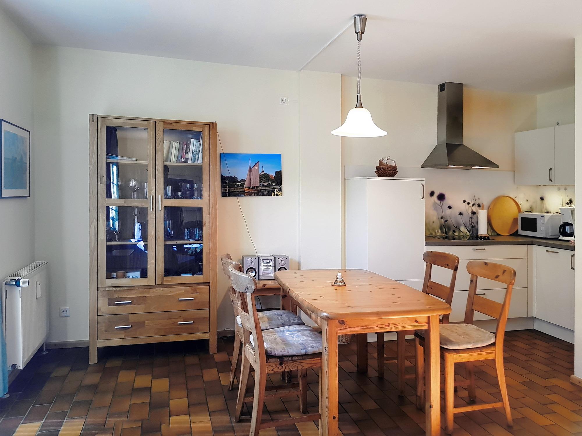 Komfortable 51qm große Ferienwohnung in der schönen Wohnanlage Kormoran im Ostseebad Prerow mit Wohnraum, Küche, Schlafzimmer, Bad mit Dusche/WC und 2. WC.