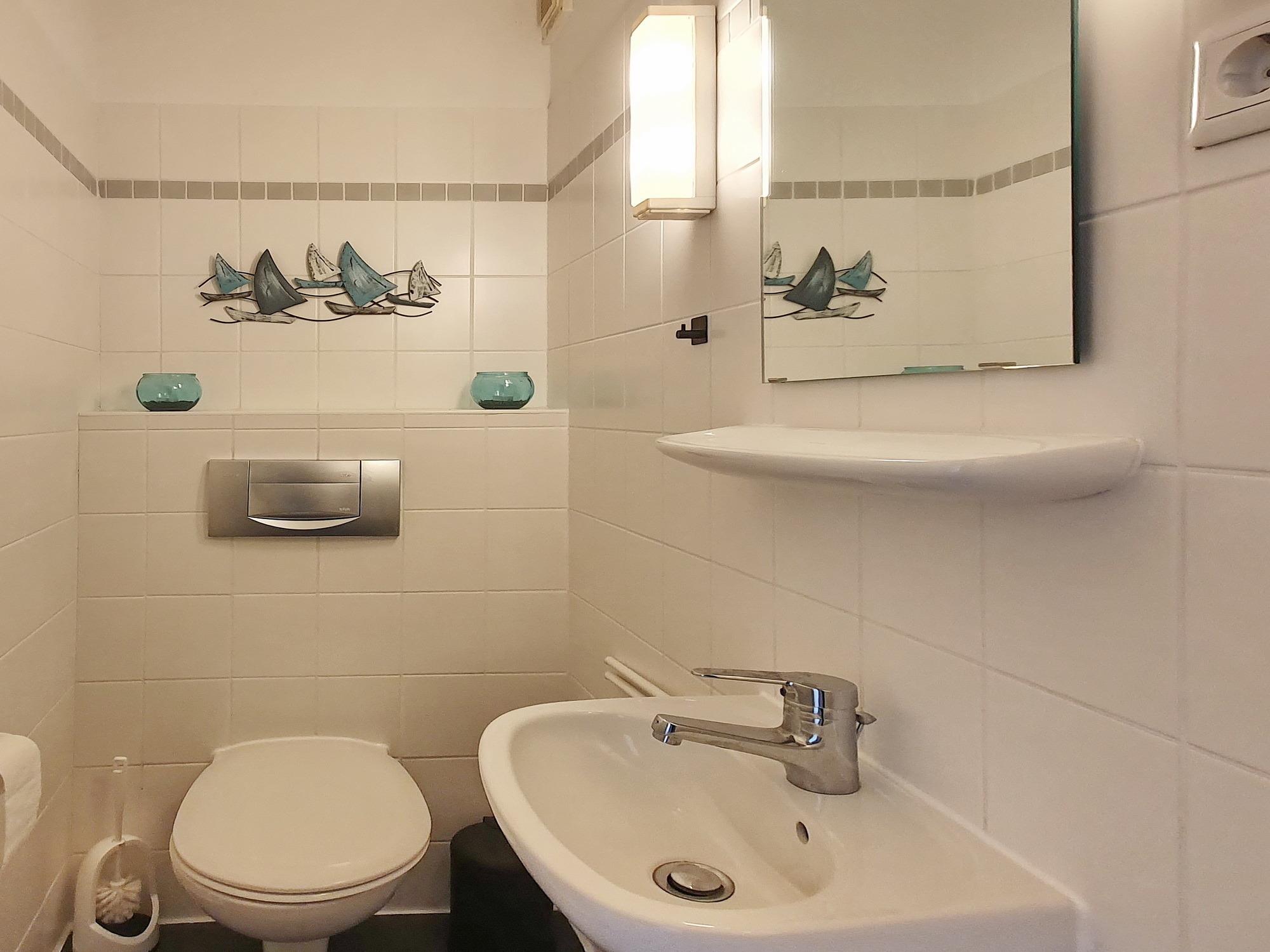 In der Wohnanlage Residenz Kormoran im Ostseebad Prerow liegt die komfortable Ferienwohnung mit Wohnraum, Küche, Schlafzimmer, Dusche/WC und Gäste-WC.