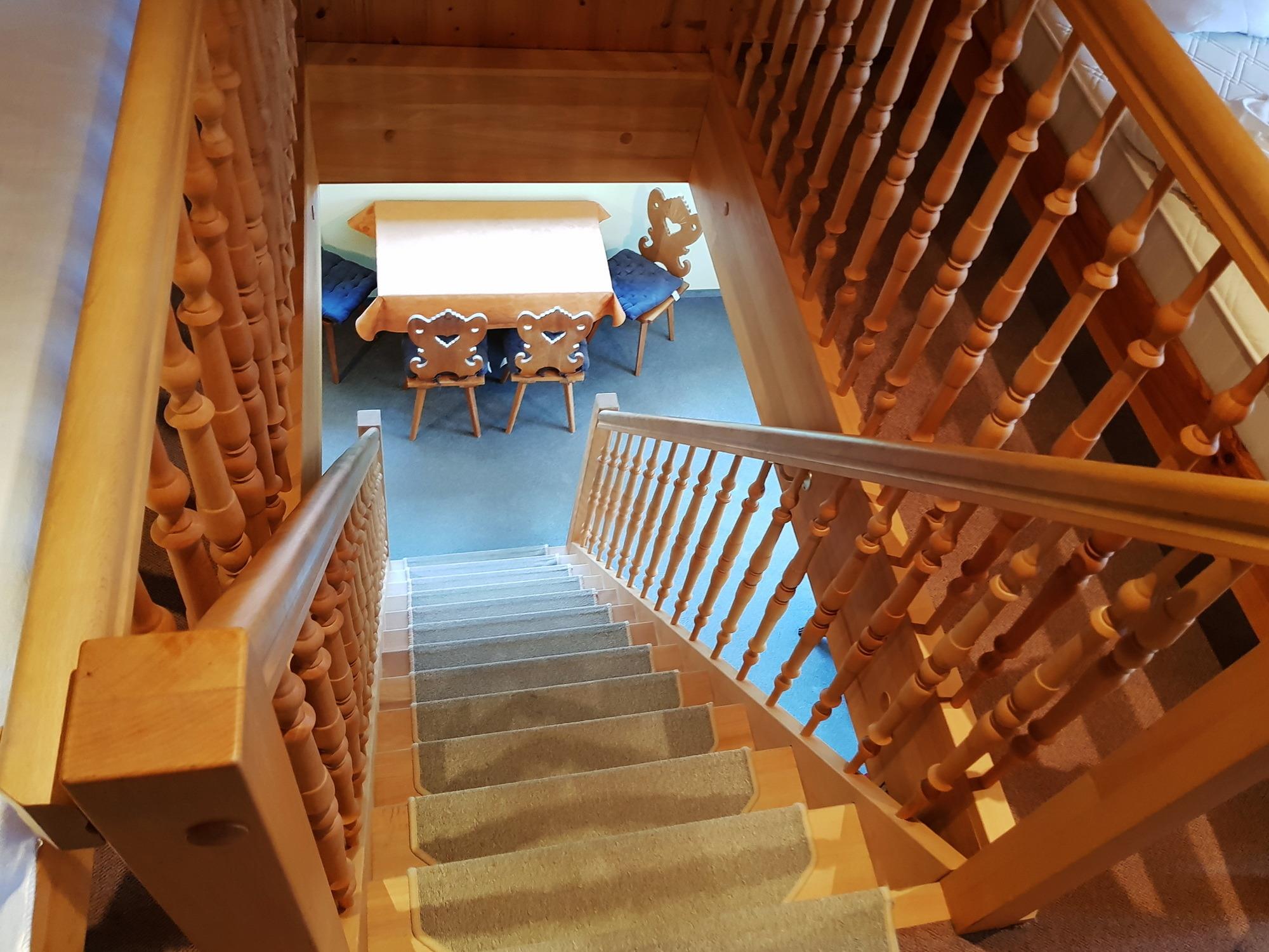 Die gut ausgestattete Ferienwohnung im 1. OG bietet Platz für bis zu 5 Personen. Ein Schlafraum, der Wohnraum mit Küche und das Bad sind im 1.OG. Der 2. Schlafraum ist im DG und über eine zum Wohnraum offene Treppe erreichbar. Vom oberen Schlafraum geht eine Schlafkammer ab, die wie eine kleine Höhle ist und daher bei den meisten Kindern sehr beliebt ist. Diese Schlafhöhle ist mit einer 1,60 x 2m großen Matratze ausgelegt.